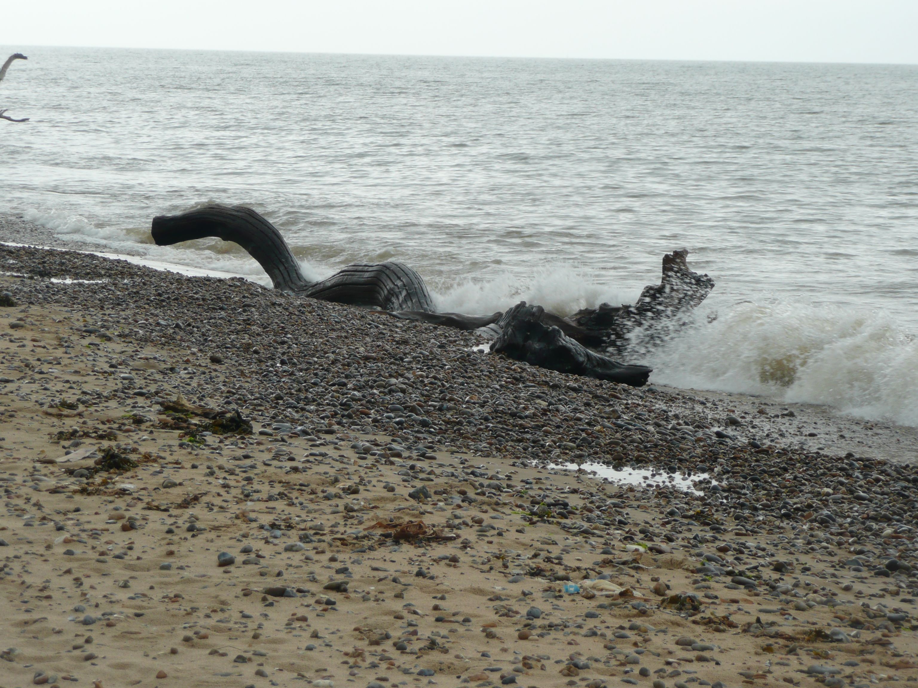 overgrown trails through muddy fields and dripping woods – now so wet it didn’t matter. A brief hole-up for a cup of tea and a couple of deviations later we hit the coast again and squelch our way into Lowestoft under Triton’s watchful gaze.