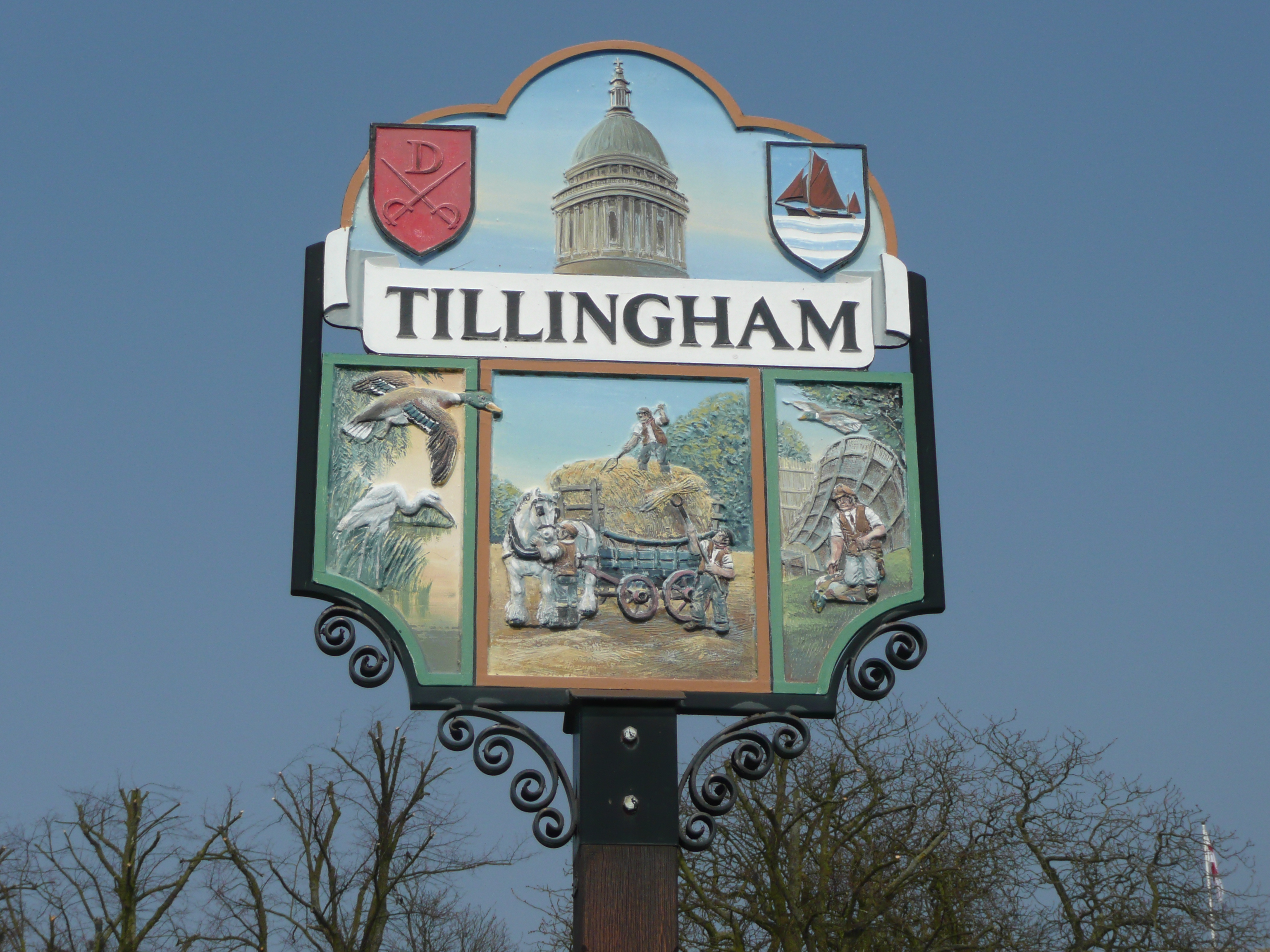 The walk from Tillingham to Southminster is monotonous, through anonymous fields, the landscape occasionally broken by a pretty church or majestic windmill. But just as I am beginning to tire, I find myself standing in front of a slightly disturbing sign warning me of potentially dangerous cattle. I stand and weigh up the alternatives – I could turn back but that would mean a long walk on a fairly busy road. So, heart in mouth I climb over the stile and just as I’m thinking the cattle must have moved on, I turn a corner and there they are – a herd of frisky bullocks! I look around for an escape, as they are already trotting determinedly towards me, shaking their heads in anticipation of a bit of fun. Luckily I see a gap in the fence supported by a metal post and just about low enough for me to haul myself over, banging my knee painfully on the pole – but I was safe!