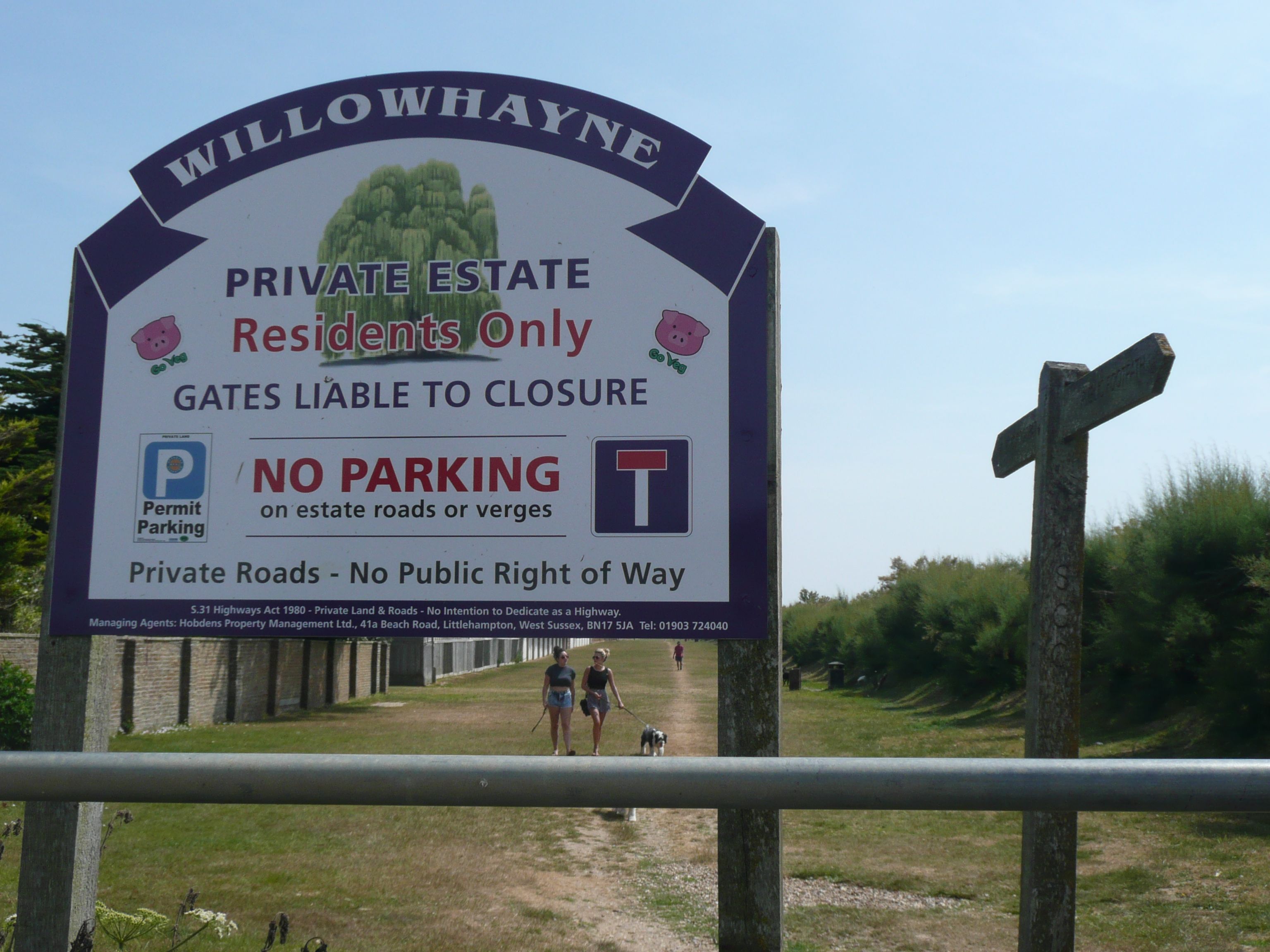 Feeling like the proverbial mad dog I get off the train from London into a sweltering midday heat and take a local bus to the coast – to the point where I left off all those months ago. Walking past the palatial houses of Angmering-On-Sea I am perplexed by conflicting signposts – one saying public right of way and the other…………I decide to carry on.