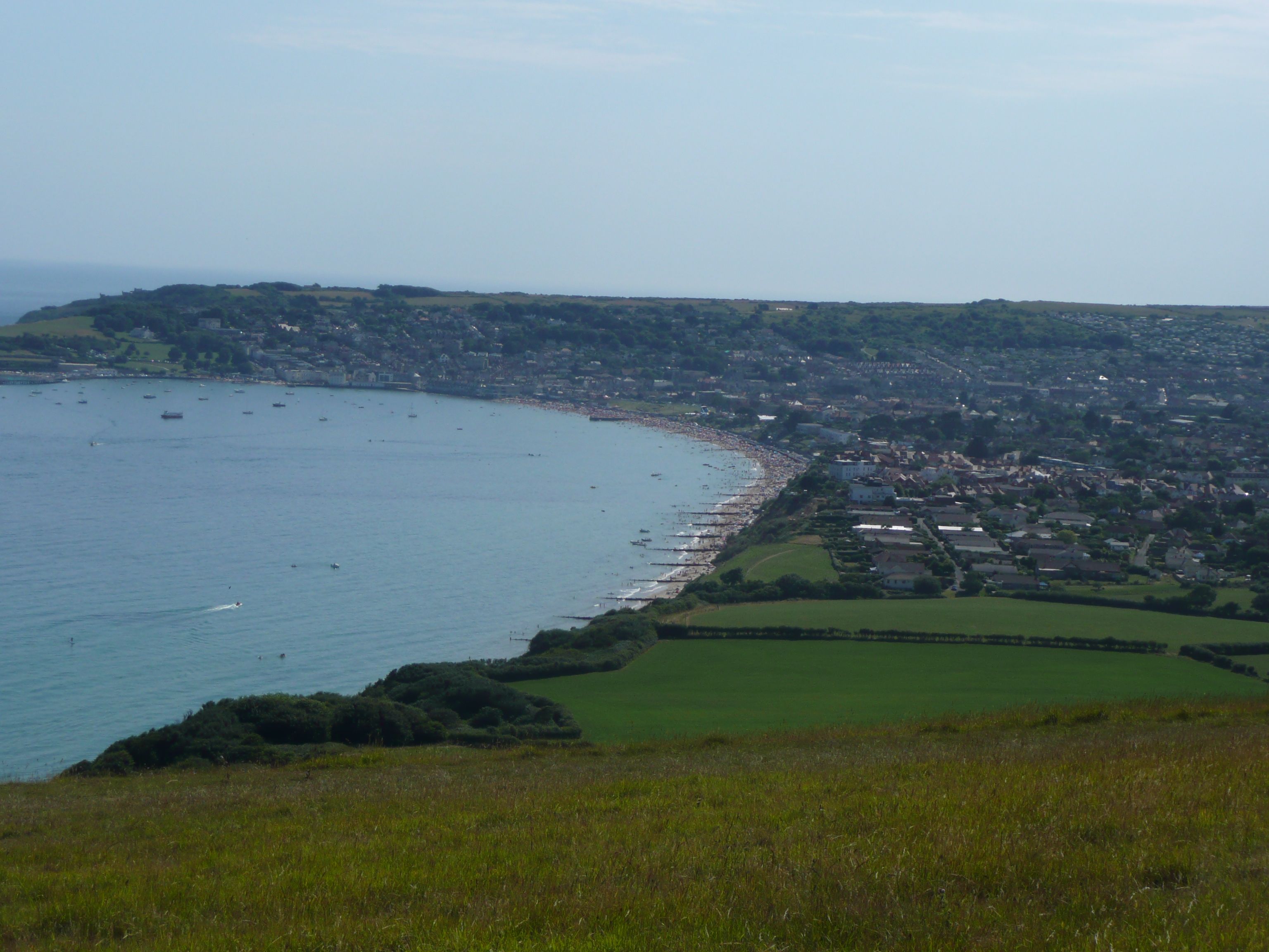 By now we can see Swanage twinkling in the sunshine below and as we stand staring rather despondently at another packed beach we catch sight of some paragliders trying to manoeuvre themselves into launch positions from the cliff edge. Eventually one of them catches the wind and gently takes off towards Swanage, swooping down to what to me looks like a sea landing. But of course he knows what he’s doing and expertly directs himself down into a green field behind the beach. “I want to do that” says Flo – and perhaps she will.