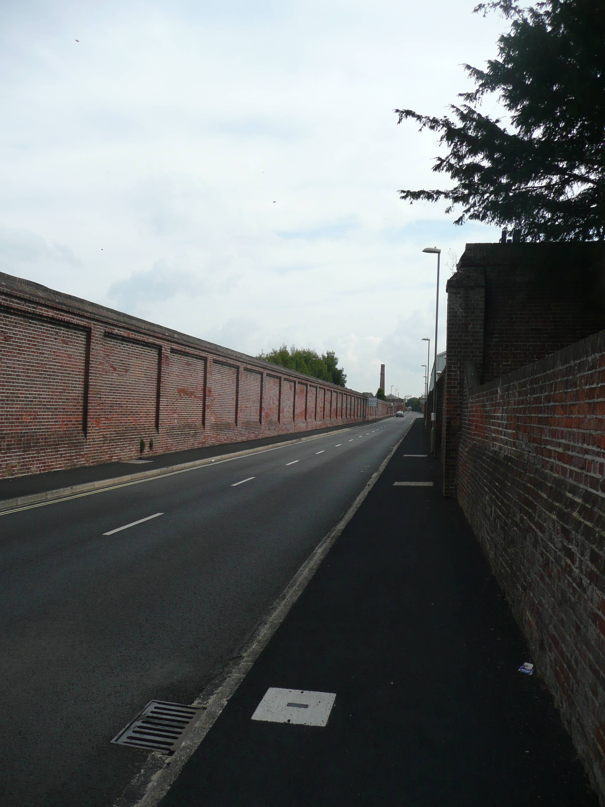From Gosport the footpath marked on the map follows the road for quite a while. On both sides a very impressive red brick wall hems me in, but thankfully there is very little traffic.