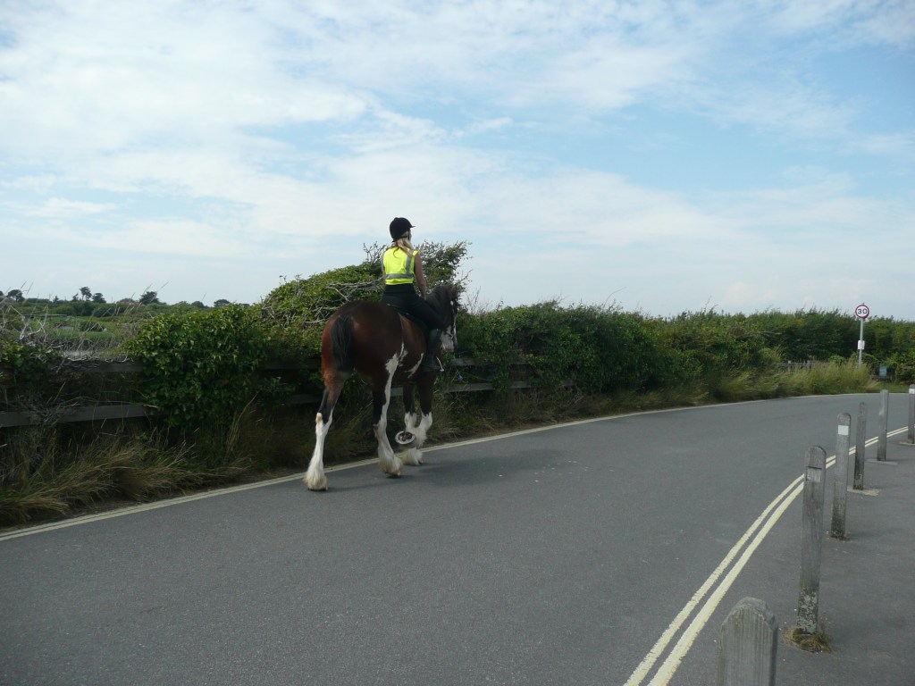 Eventually it gets easier and following well worn paths I end up at Lee-on-the-Solent where I sit and eat a well earned ice-cream. Still following the Solent Way I walk towards Hillhead Harbour where a children’s sailing competition is in progress – the brightly coloured sails of the twenty or so mirror dinghies catching my attention, as does the trainer barking instructions from the shore. As I walk past the harbour a beautiful shire house clops by with a young girl perched on its broad back.