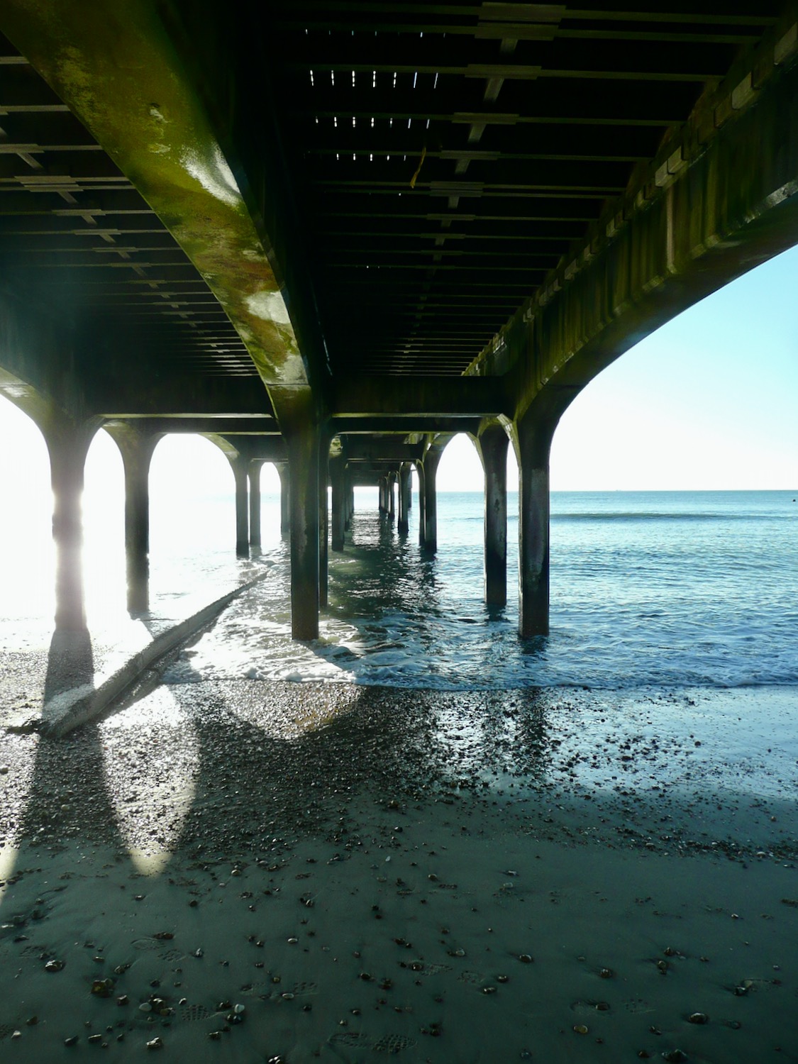 Further on a cliff lift stands abandoned for the winter and approaching Boscombe I walk past the ubiquitous beach huts (I’ve quite gone off them) which combined with the intensive seafront building is enough to dampen my spirits. In the distance a grey concrete pier stretches out into the sea – I prefer to be under it than looking at it.