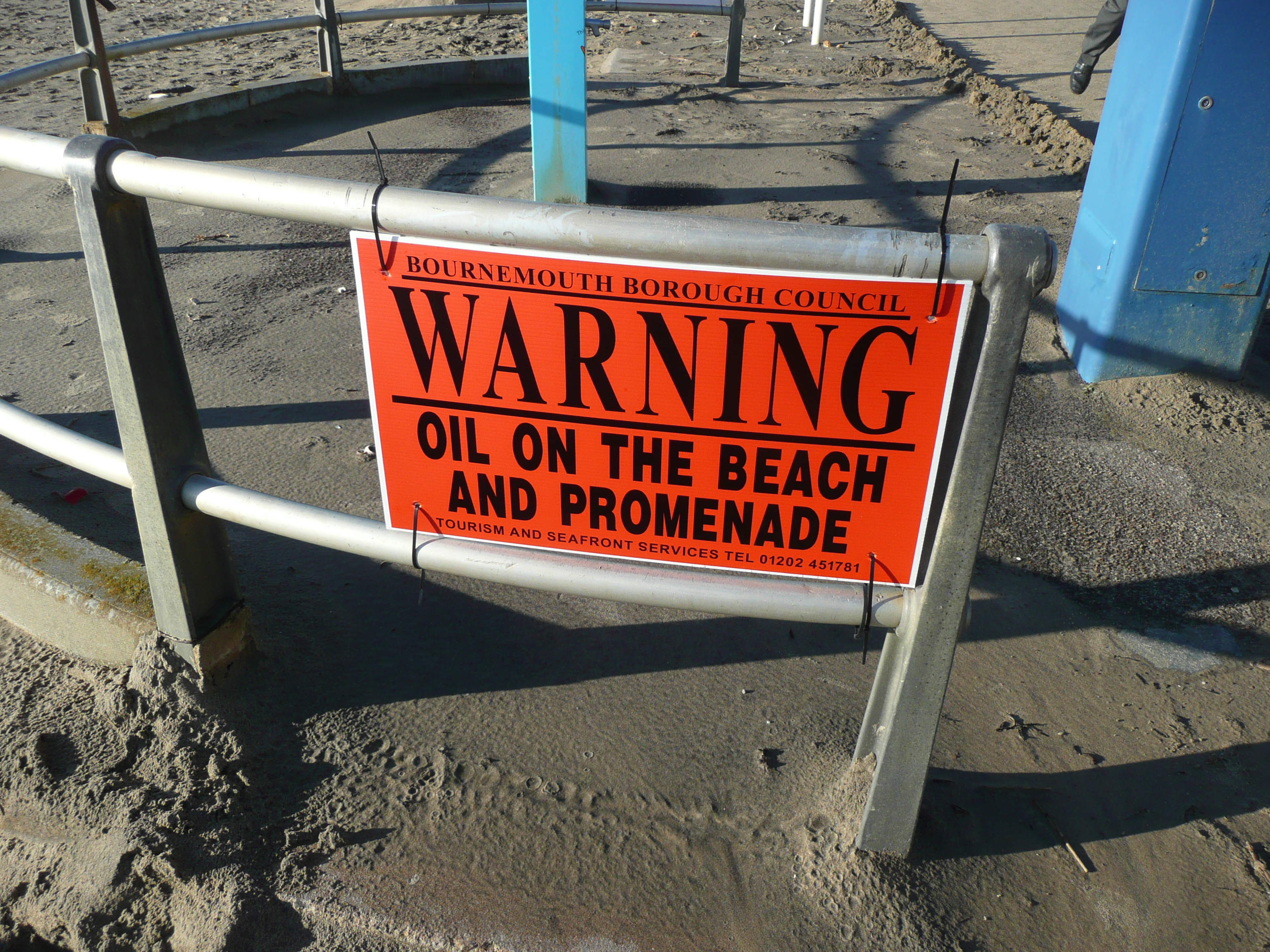Further on there’s more evidence of storm disruption – there are warnings of washed up oil and the beach looks like a building site.