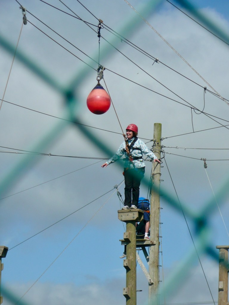 Walking on, the path now widens out onto a broad sweep of grass and I stop to watch a group of youngsters trying their luck on climbing frames and zip wires, they are all very brave.