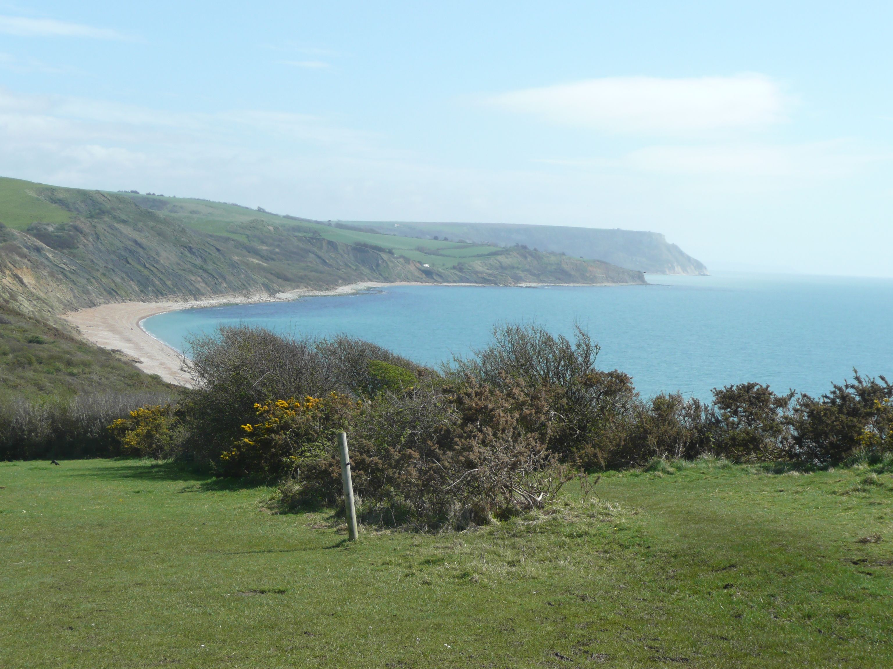 I spend the night in East Knighton in a pub which I’m told was Lawrence of Arabia’s local when he was stationed at nearby Bovington – I even get to see his favourite seat by the fire which unfortunately is occupied. The following morning I get a taxi to West Chaldon where the map is showing some sort of a path to take me down to a point on the coast, more or less where I finished last time. And indeed there is a muddy, potholed track which leads me onto the South West Coast Path and puffing and panting up the mighty White Nothe. Unlike last time the weather is kind and it promises to be so all day.