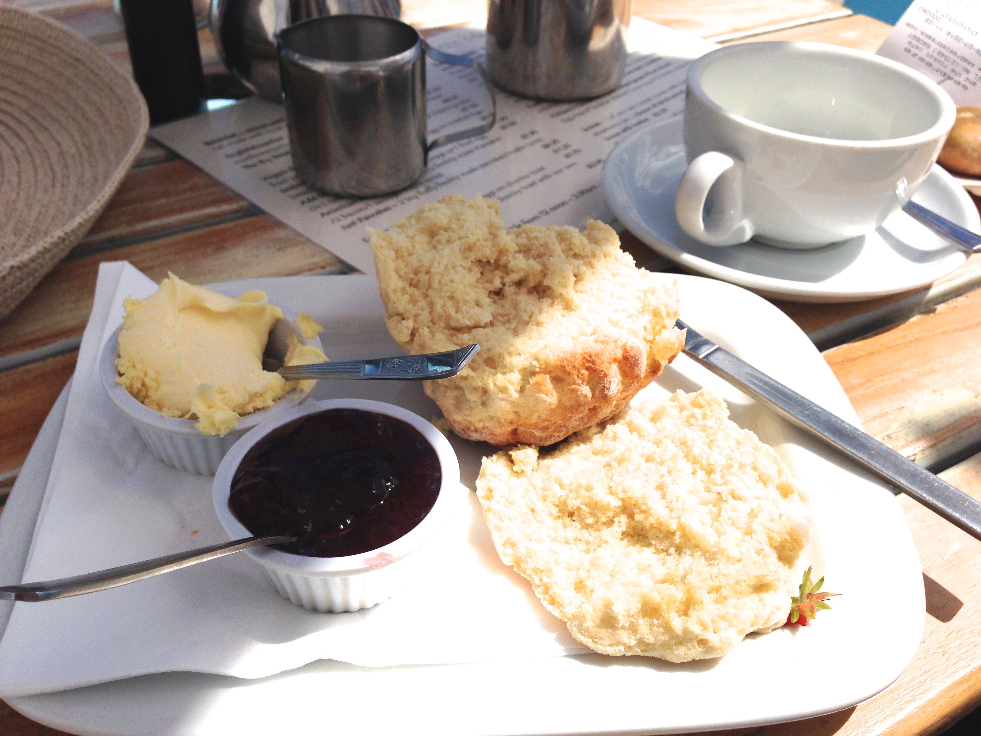 After a stretch of easy walking on a grassy path, I walk into Torcross where I decide I need fuel. One of the many beneficial aspects of walking so many miles is that it allows me to quieten the guilt which would normally be brought on by eating Devonshire cream teas at any time of the day. Sitting in the glorious sunshine eating scones, jam and cream with a pot of tea is simply divine.