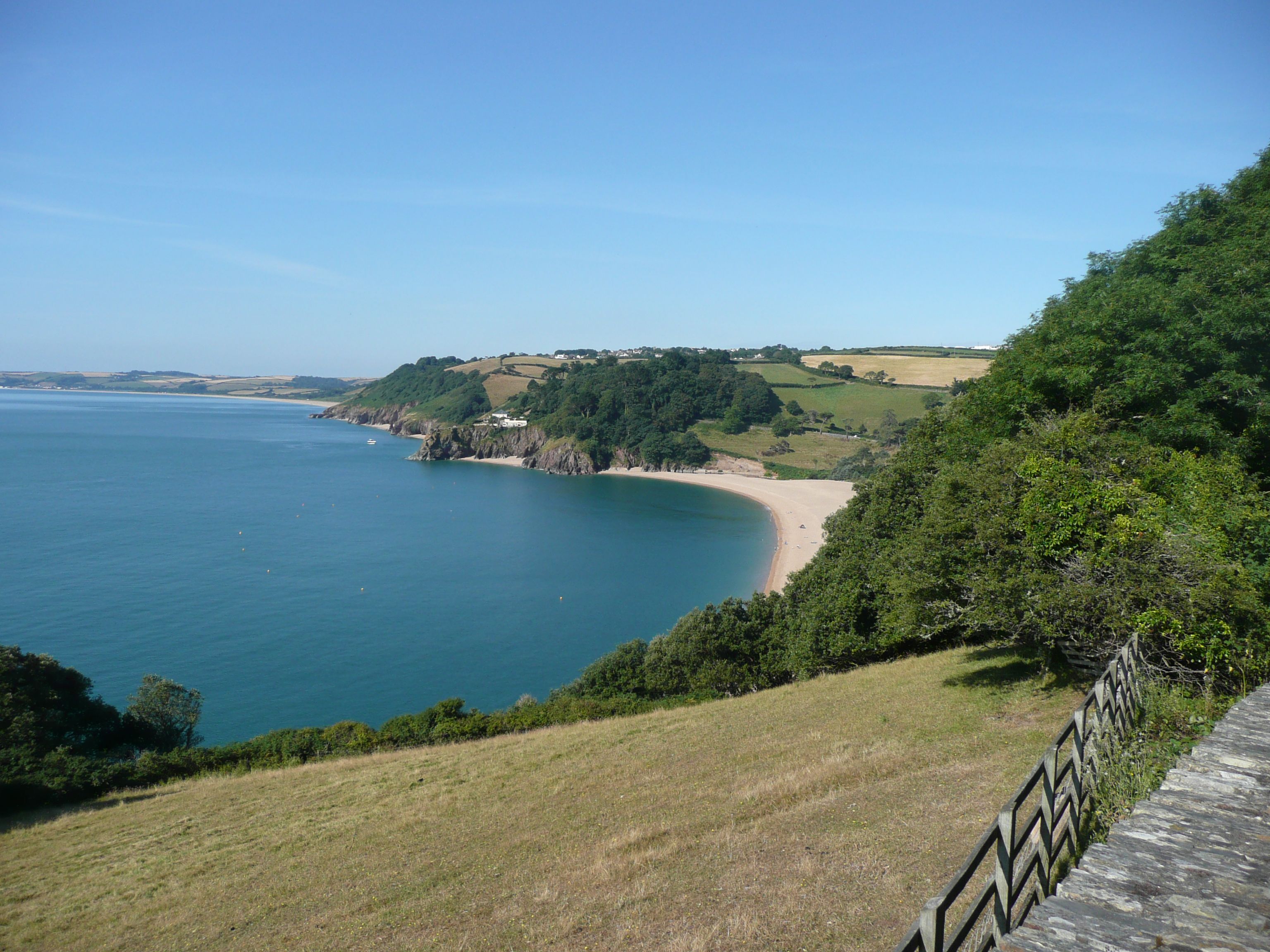 Halfway across the field I realise I am heading for a corner with no apparent exit so retracing my steps I walk up the very steep slope to where I think I can see a coast path sign – I take another shot of Blackpool Sands from the top, it is such a lovely spot.