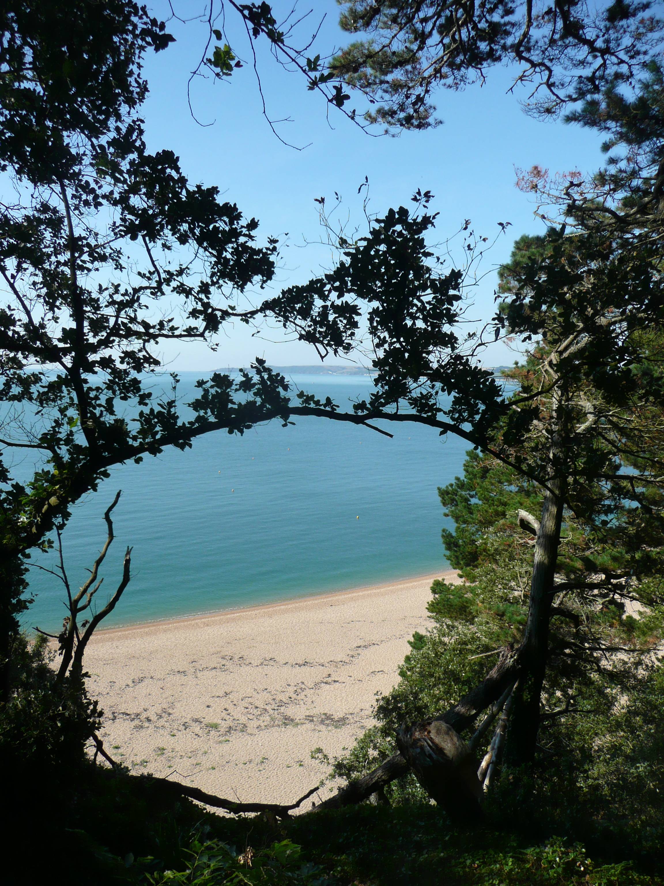The path now winds up through trees, bushes and shrubs with wonderful views of Start Bay.