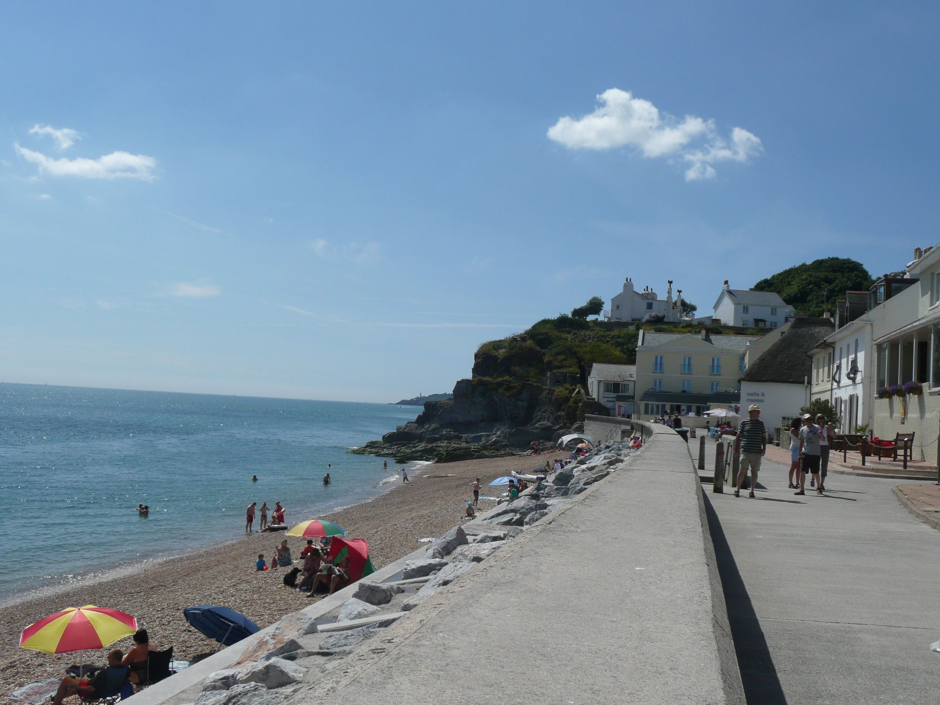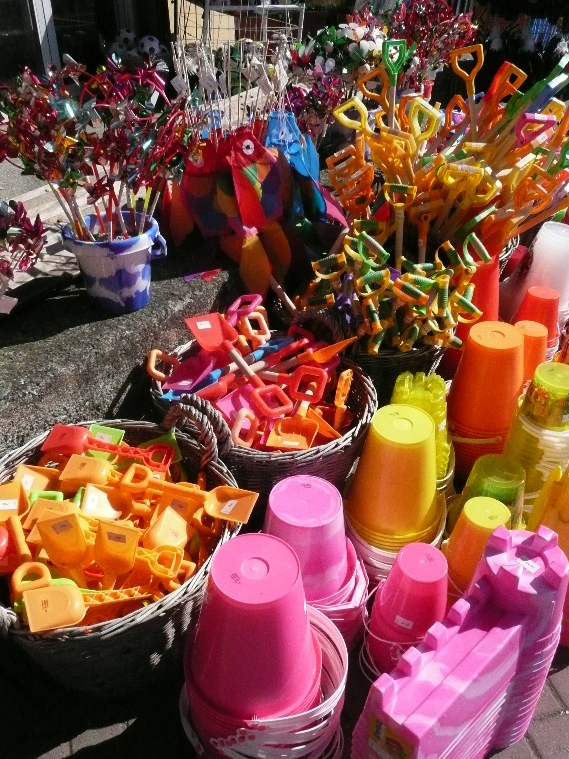 When I arrive I am pleased to see that the shop is open so I can buy some water – the shock of the Brixham to Kingswear walk without much water has taught me a lesson. Coming out of the shop I am momentarily dazzled by the display of coloured plastic paraphernalia – everything you need for a day at the seaside.