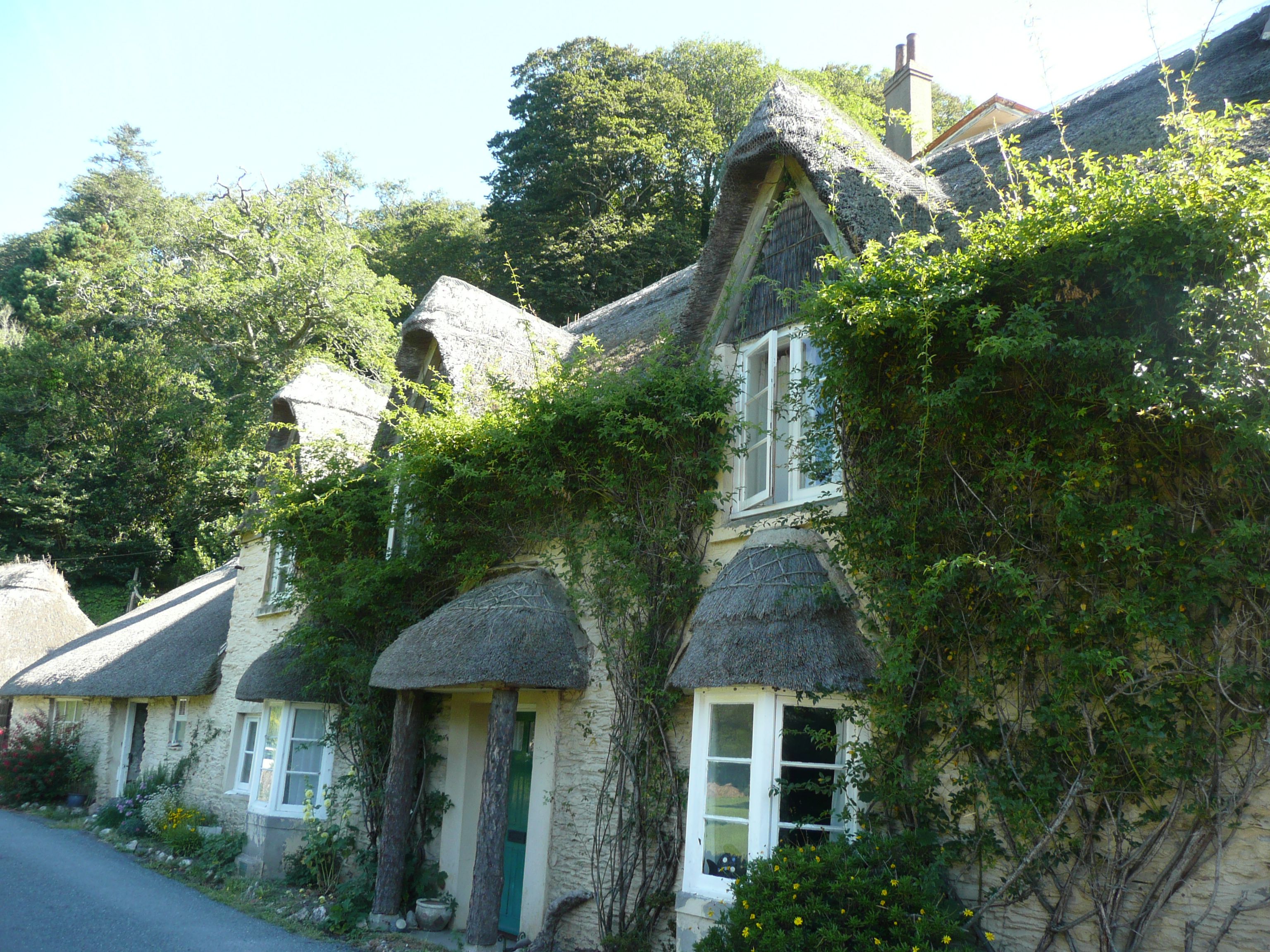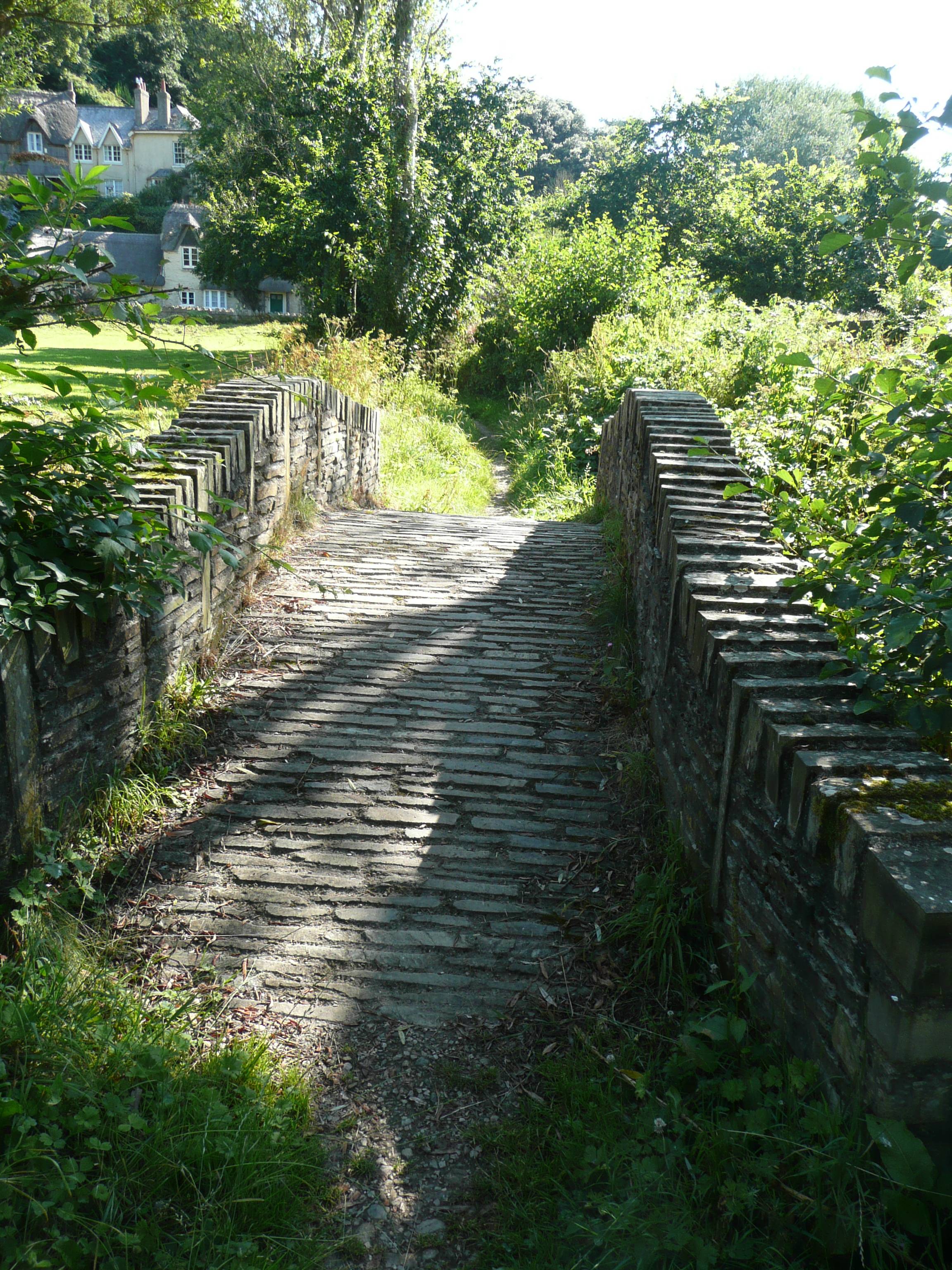 From here I cannot walk along the coast due to a stretch of private property (and I still don’t understand how that can be legal) so following the directions of a friendly car park attendant I cross the road just in front of a row of pretty thatched cottages, to follow a track over a lovely stone bridge and then through into a steep green field.