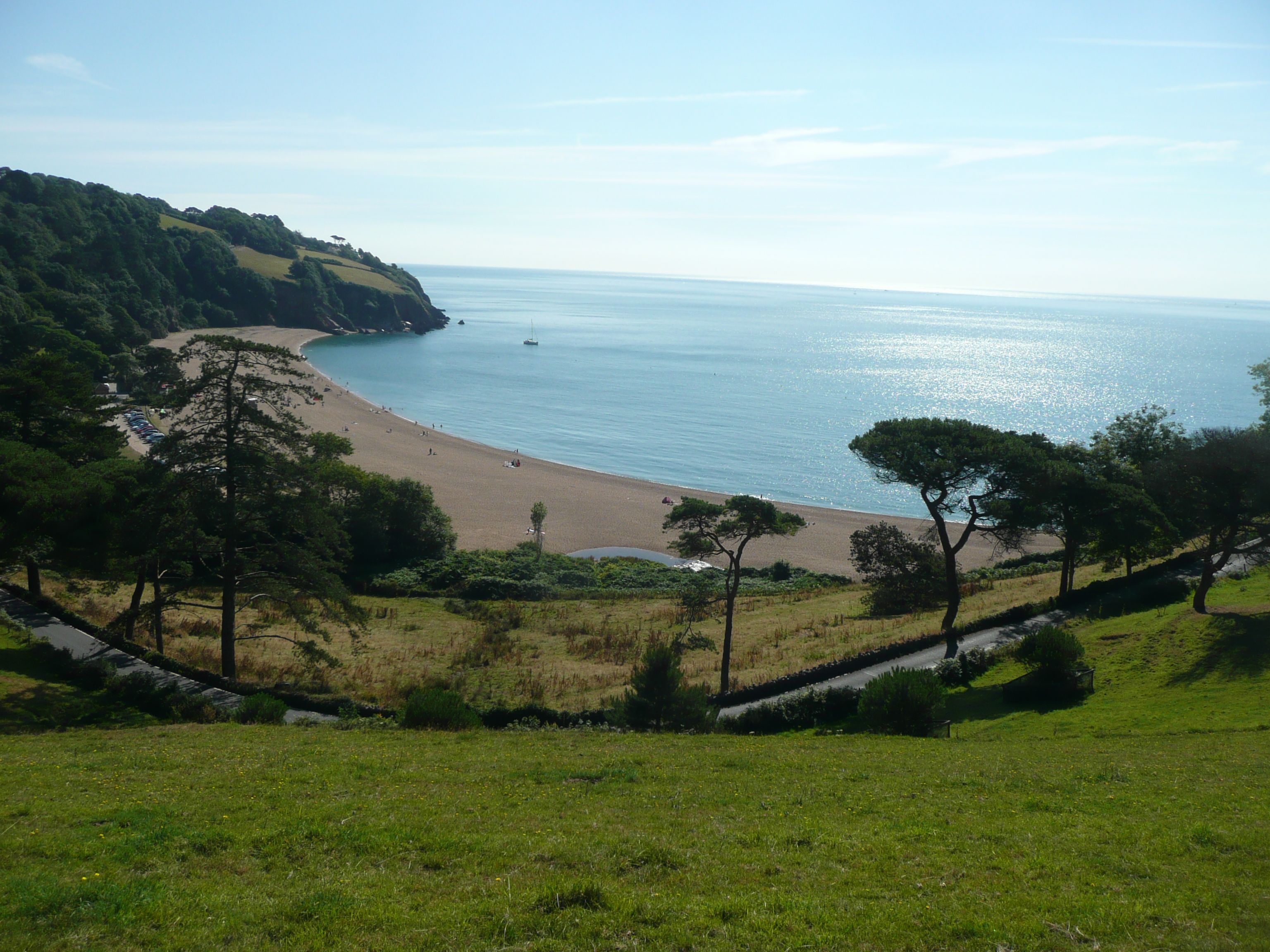 It is a beautiful day as I head down a quiet green lane, past the village church and onto a narrow tarmac road leading to Blackpool Sands.