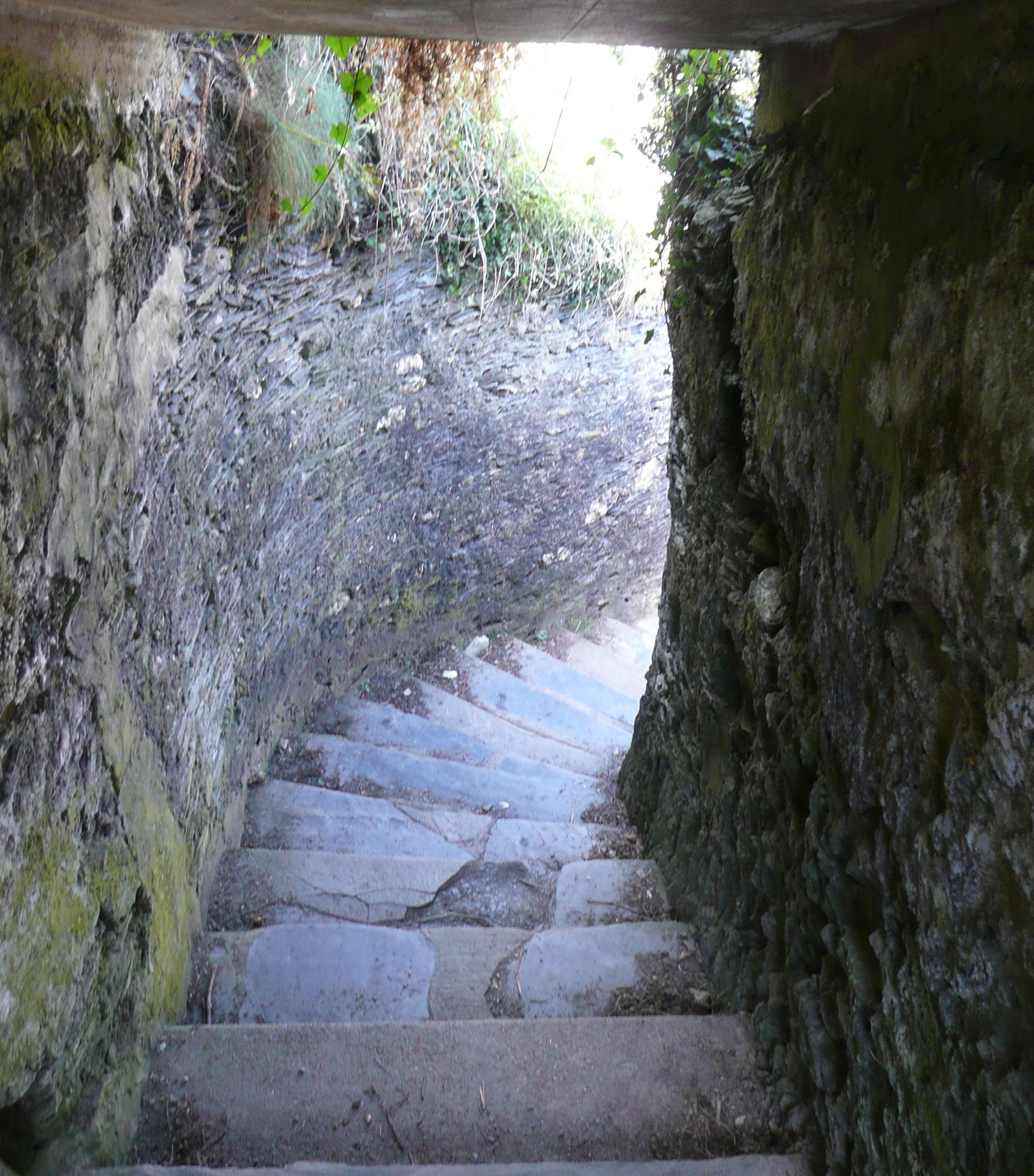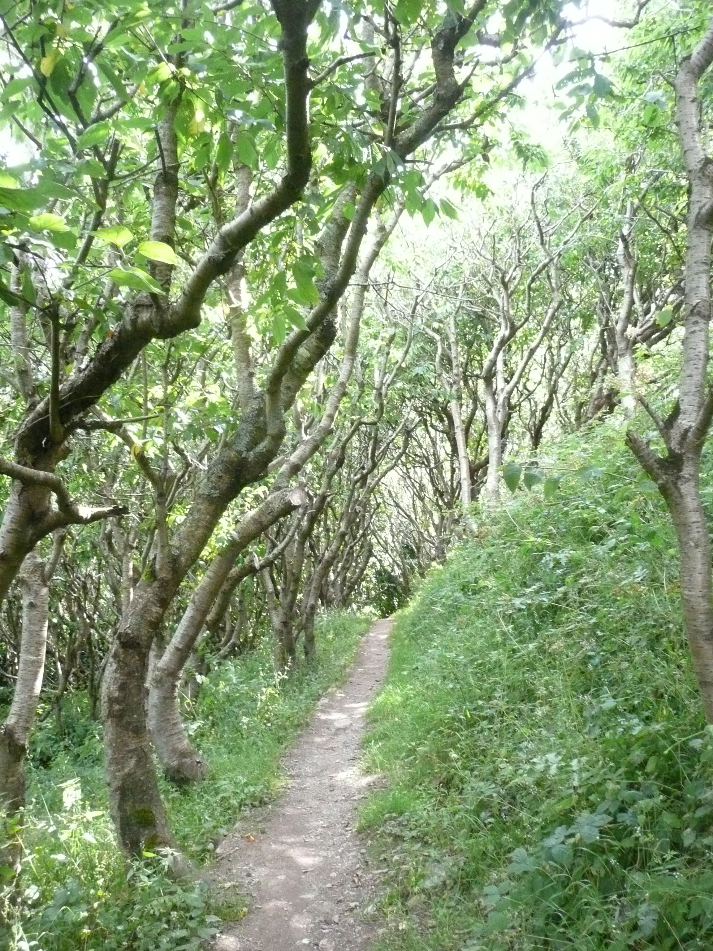 Sure enough there is a sign pointing left up a grassy lane, ferns, nettles and brambles on both sides, not great when you’re wearing shorts.