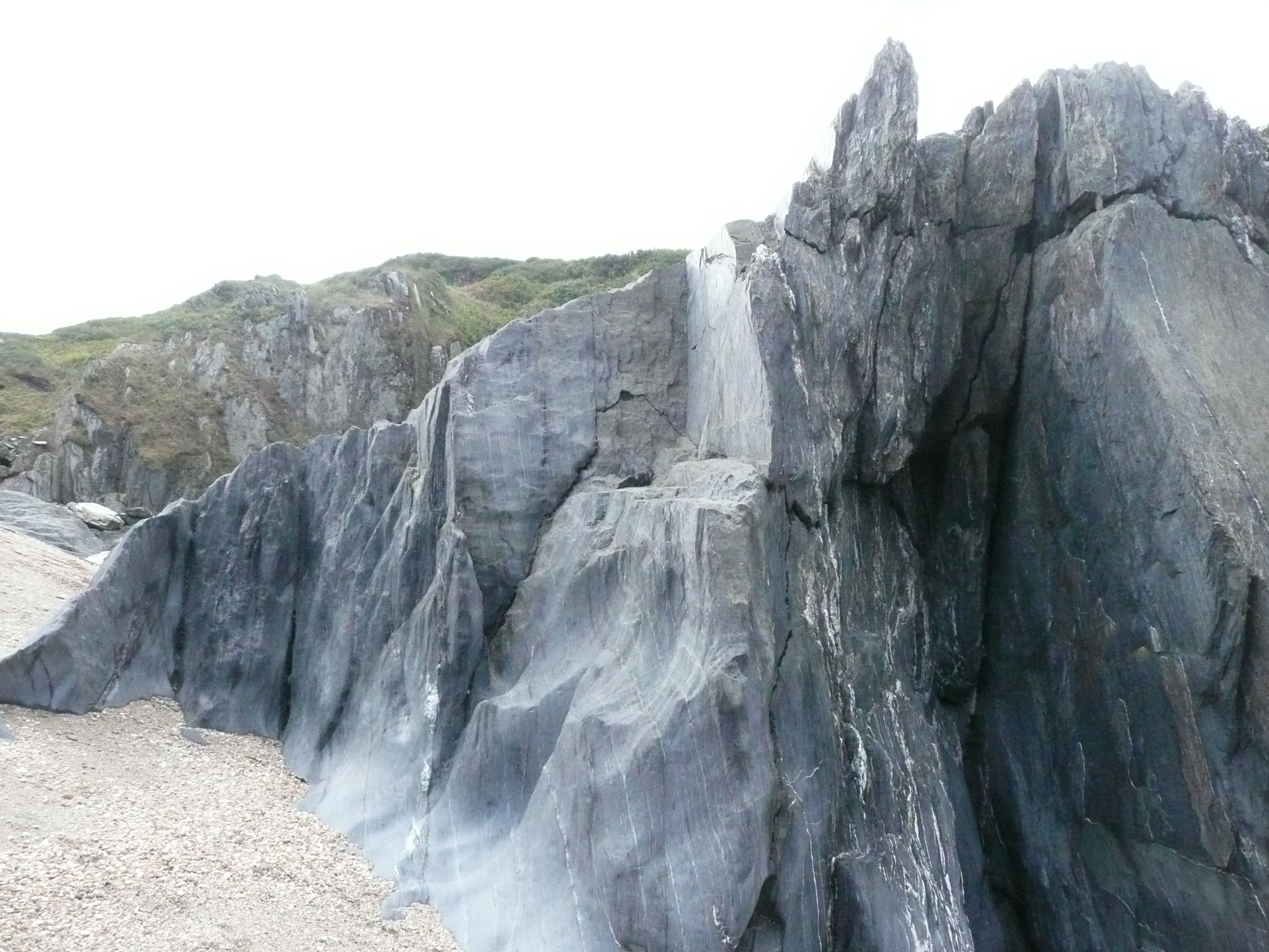 Massive slate rocks sculpted by the waves are strewn across the beach – they make me think of Wales and the two large pieces we brought back from Snowdonia for our garden.