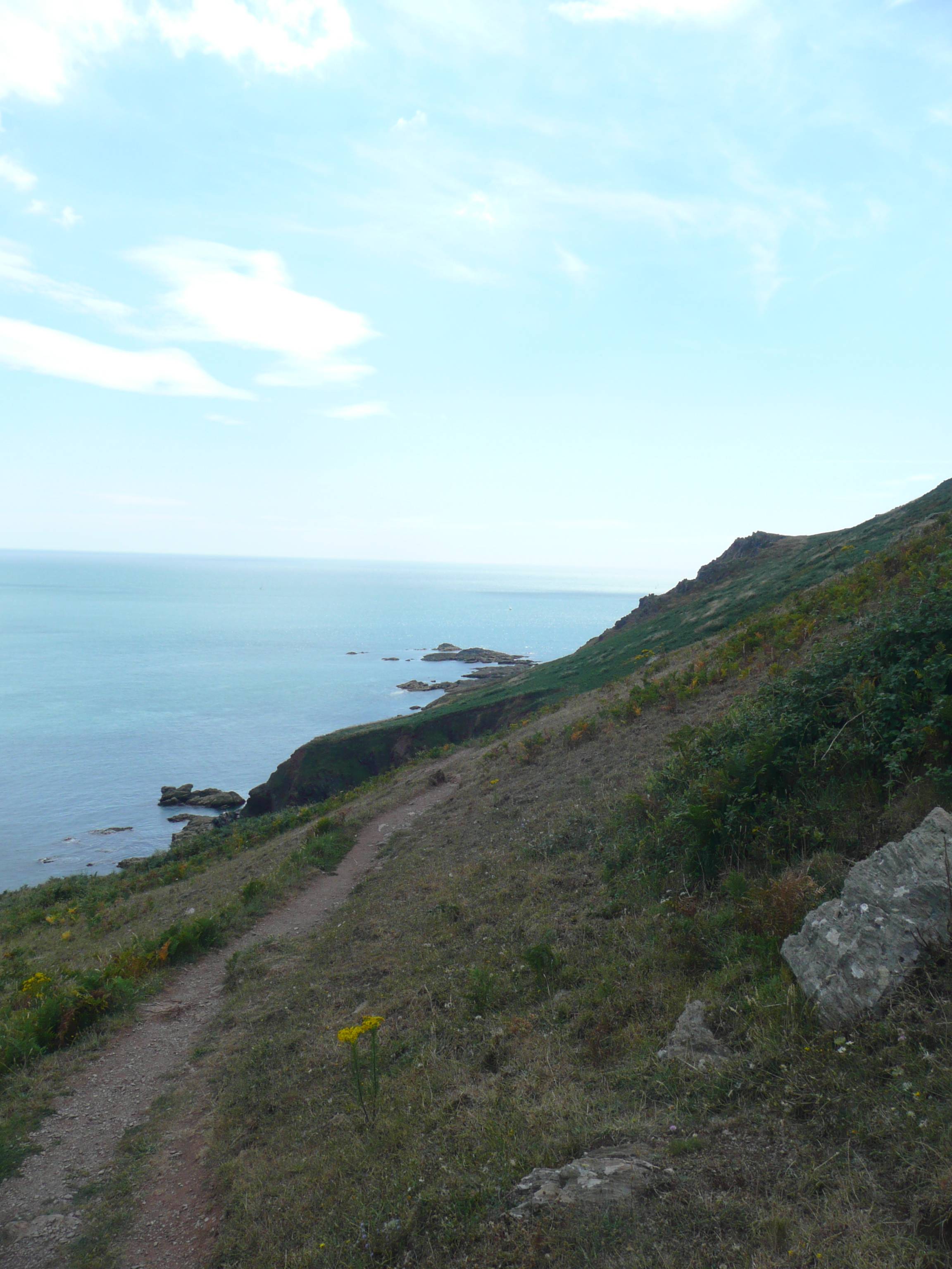 This last part of my walk is beautiful, the path winds along the top of the cliffs and at intervals looks down on small isolated coves where a few people are swimming – there is no road access.