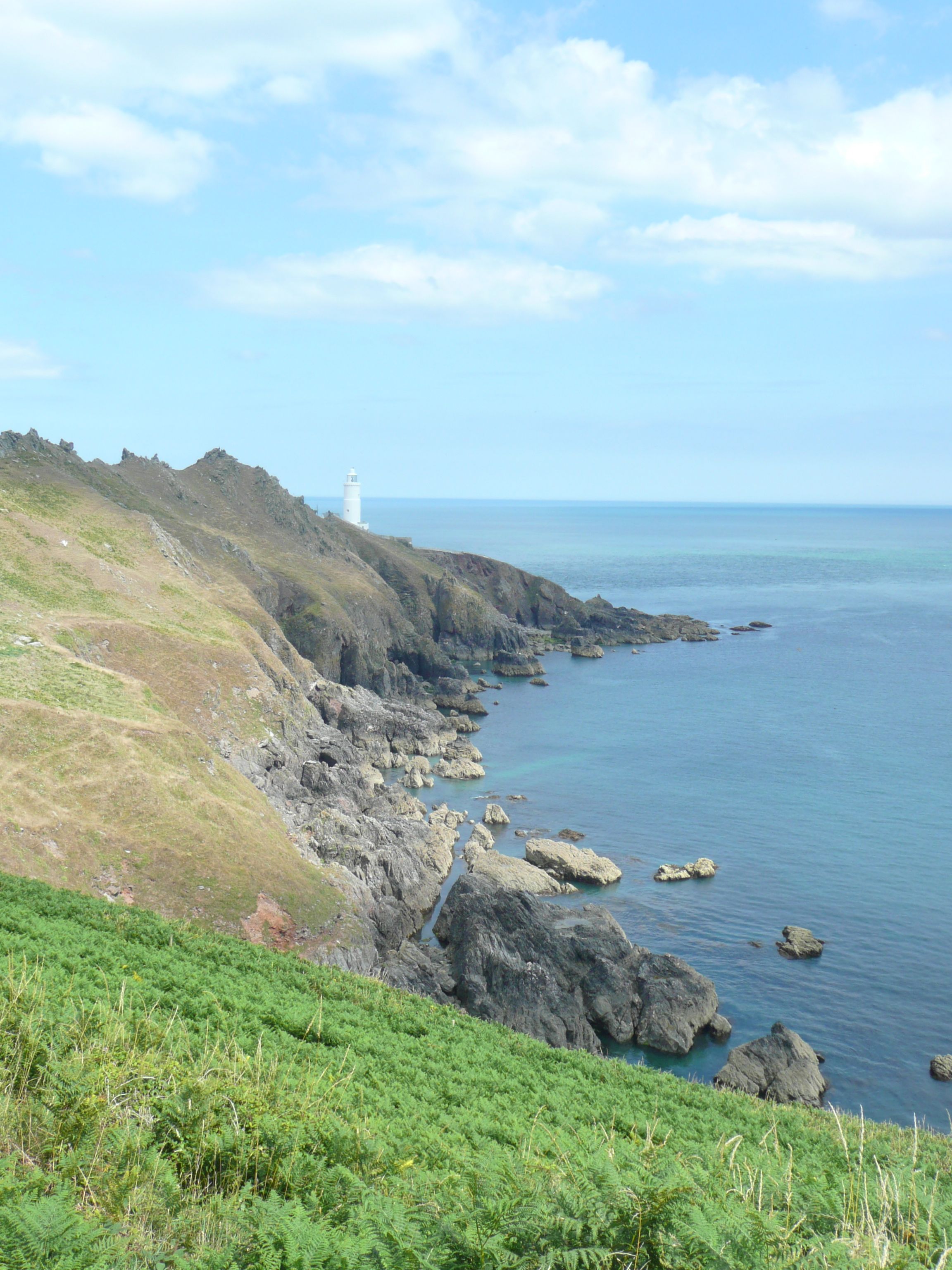 The sea beneath me is a wondrous blue, the underside of rocks marked by bright purple smudges under the crystal clear water – despite the sunny day I meet very few people. Reaching the road down to the lighthouse I check my watch and wonder if I can cover a few more miles. A young couple wearing walking boots appear and I stop to get some local knowledge. I decide not to investigate the lighthouse but carry on walking to Lannacombe Beach.