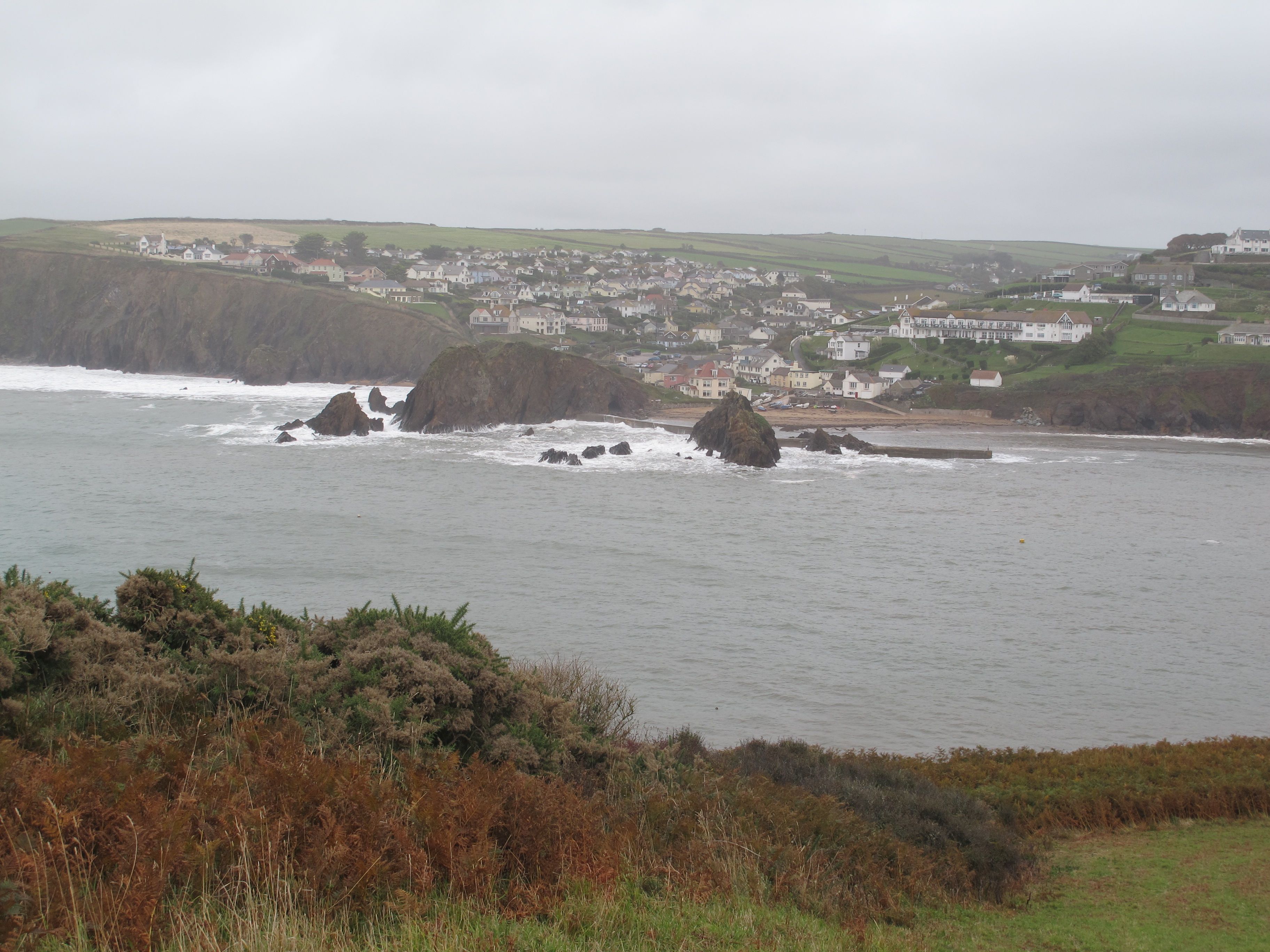 From Bolt Tail we look down on the villages of Inner and Outer Hope, the sea is very rough.