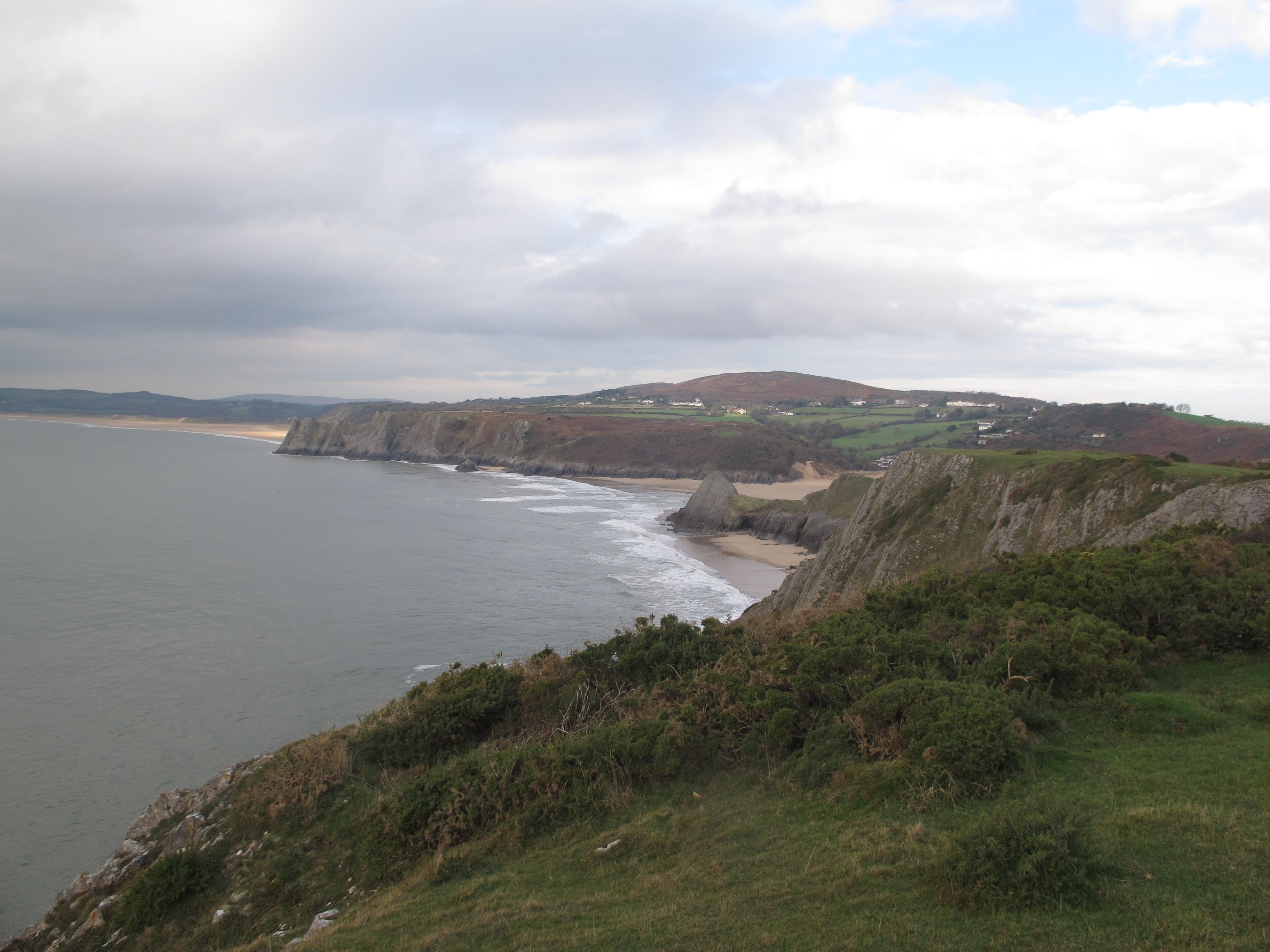 On the other side we turn left and follow the path up through heathland to the tops of the cliffs – from here we are faced with the wonderful sweep of Oxwich Bay.