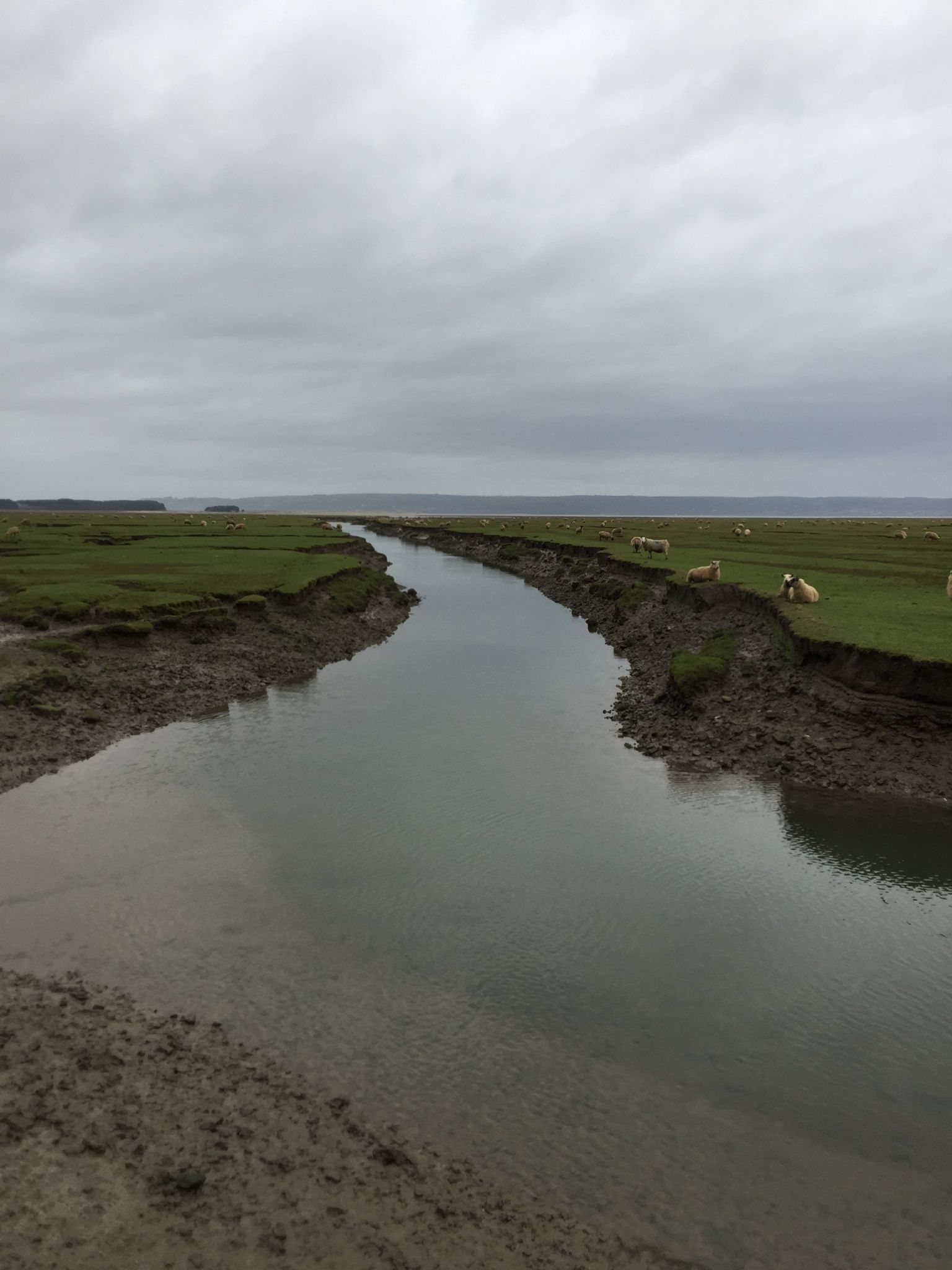 After a while we reach Whiteford Point and the landscape begins to change. The path takes us into the hushed soothing atmosphere of a pinewood with lots of narrow trails heading off in different directions. IMG_2050The path gets gradually muddier and to our left Llandimore Marsh rolls out to the silvery ribbon of the River Loughor in the distance These are salt marshes, home to samphire, sorrel, sea lavender and thrift – plants which give the Gower salt marsh lamb its distinctive flavour.IMG_5953The ones who escaped follow our progress with what almost looks like interest….IMG_1123By this time we are more than ready for a cup of tea so when we discover that the path off to our left is closed due to flooding, we head off down a tarmac road following a sign to Cym Ivy which will eventually take us on to Llamnmadoc. IMG_5948To our right some ponies are grazing and once more I find myself wondering if I will ever find myself on the back of a horse again. Riding the trekking ponies my parents organised for me each winter was a huge part of my childhood and it surely has to be something you don’t forget to do – it’s just that falling off may have more serious consequences than it used to ……yes I’m chicken.IMG_5946Cwm Ivy looks like a prosperous little hamlet with almost all the houses and farm buildings showing signs of refurbishment – I have a feeling there are not many Welsh accents here but I may be wrong. Following the road we meet a couple who give us the disappointing news that the tea shop had just closed but that there is a pub at the bottom of the hill. We walk down and in five minutes are comfortably installed in a busy little bar serving Sunday lunches. We go for the tea and toasted teacakes but soon a group of about fifteen jolly walkers squeeze through the door with the same idea as us. They stand looking longingly at our seats but I refuse to gobble my tea cake or scald my tongue on the tea.