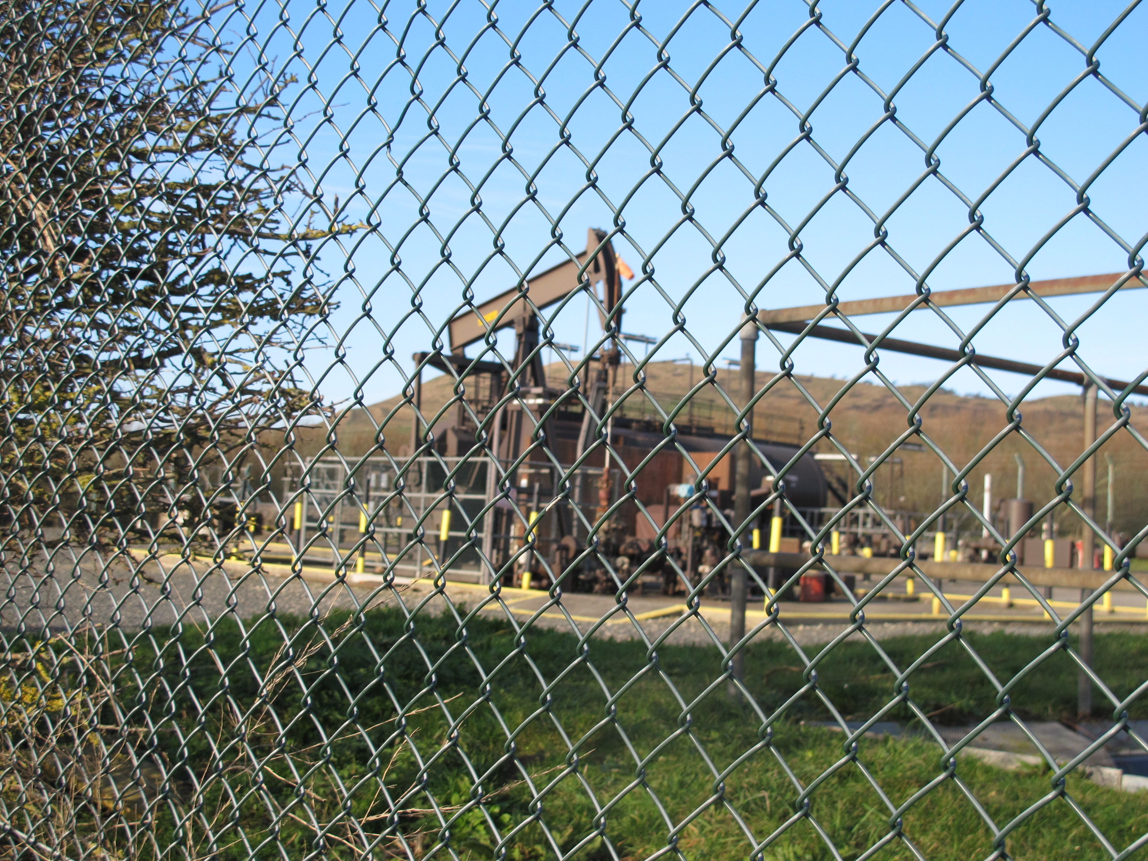 We start our walk just south of Kimmeridge, where I finished almost a year ago and took a taxi to Lulworth Cove where I continued my walk (and twisted my ankle). It was a weekday so I was forced to hop over 8/9 miles of MoD land only open to the public at weekends.  IMG_2053It is a beautiful day as we head down the rough track which will take us to the entrance to Lulworth Ranges.IMG_2057Just before the gate we stop to investigate what Damian tells me is a “nodding donkey” – pumping oil up from the underground shale. Apparently, this donkey has been nodding since the 1950’s and is the oldest working oil pump in the UK. Another claim to fame is that in 1858, the company who owned the land were contracted to supply gas, extracted from the shale, to light the streets of Paris. The French, always a sensitive lot, were not impressed, they could not stand the foul smell of the burning gas – bof!IMG_2055Anyway, after another photo opportunity for Damian, we walk onto the ranges following lines of yellow posts with signs warning walkers not to stray from the path.IMG_2060 After a mile or two the iPhone tells me that we are nearing the abandoned village of Tyneham which lies half a mile inland. As this walk is going to be a short one we can afford to deviate so we follow the extremely muddy path down to the right. Half way down a woman wearing trainers comes tottering up the path on platform soles of caked mud and warns us that there is worse to come. So we hop gingerly from clod to clod, I am very glad I have my pole with me for balance.