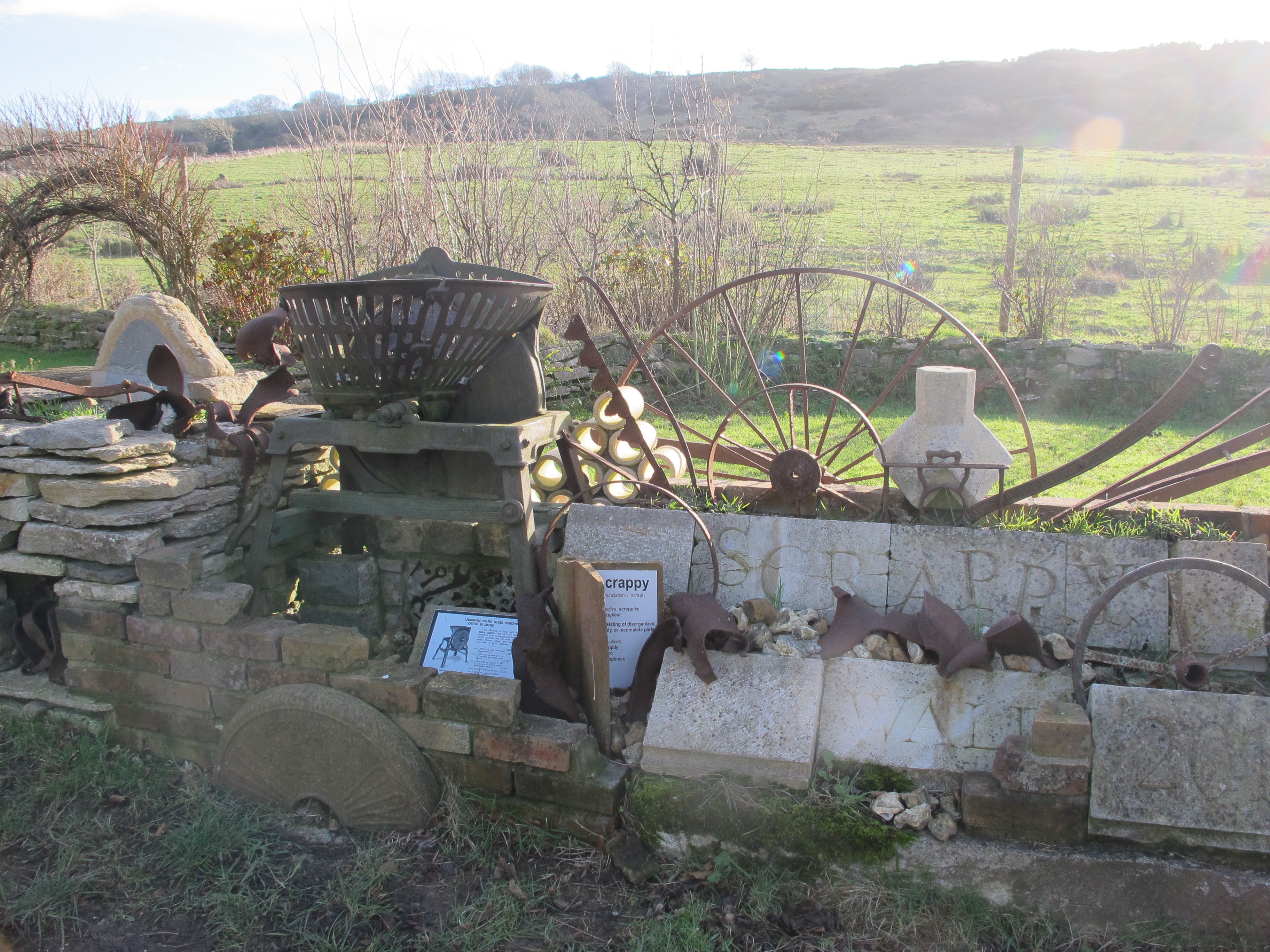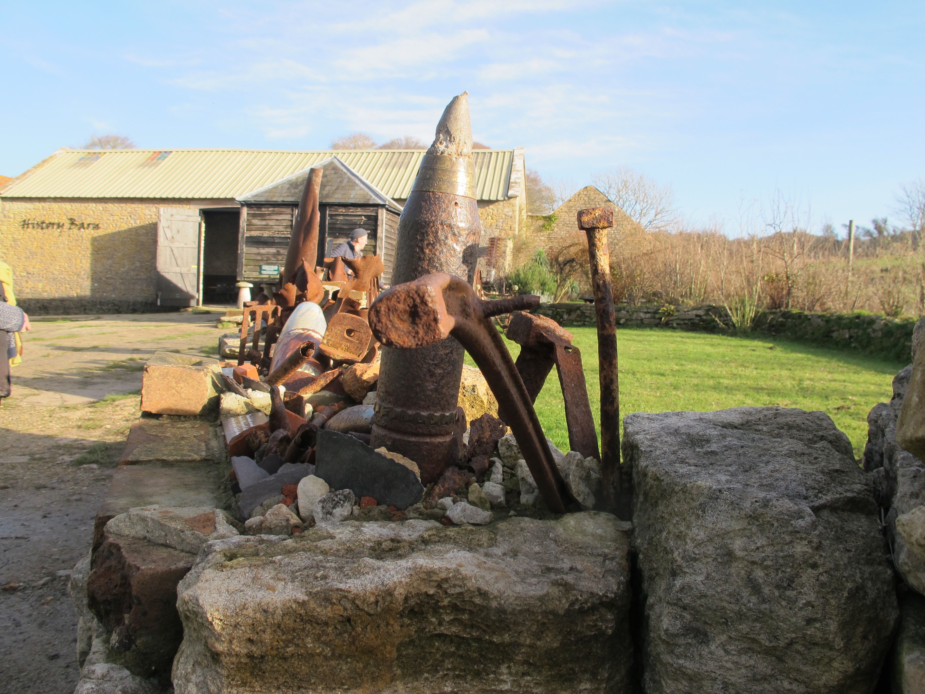 It remains a curiosity – a sculpture wall has been built in the yard, using old farm implements and military shells and a few of the buildings have been carefully restored.IMG_2064