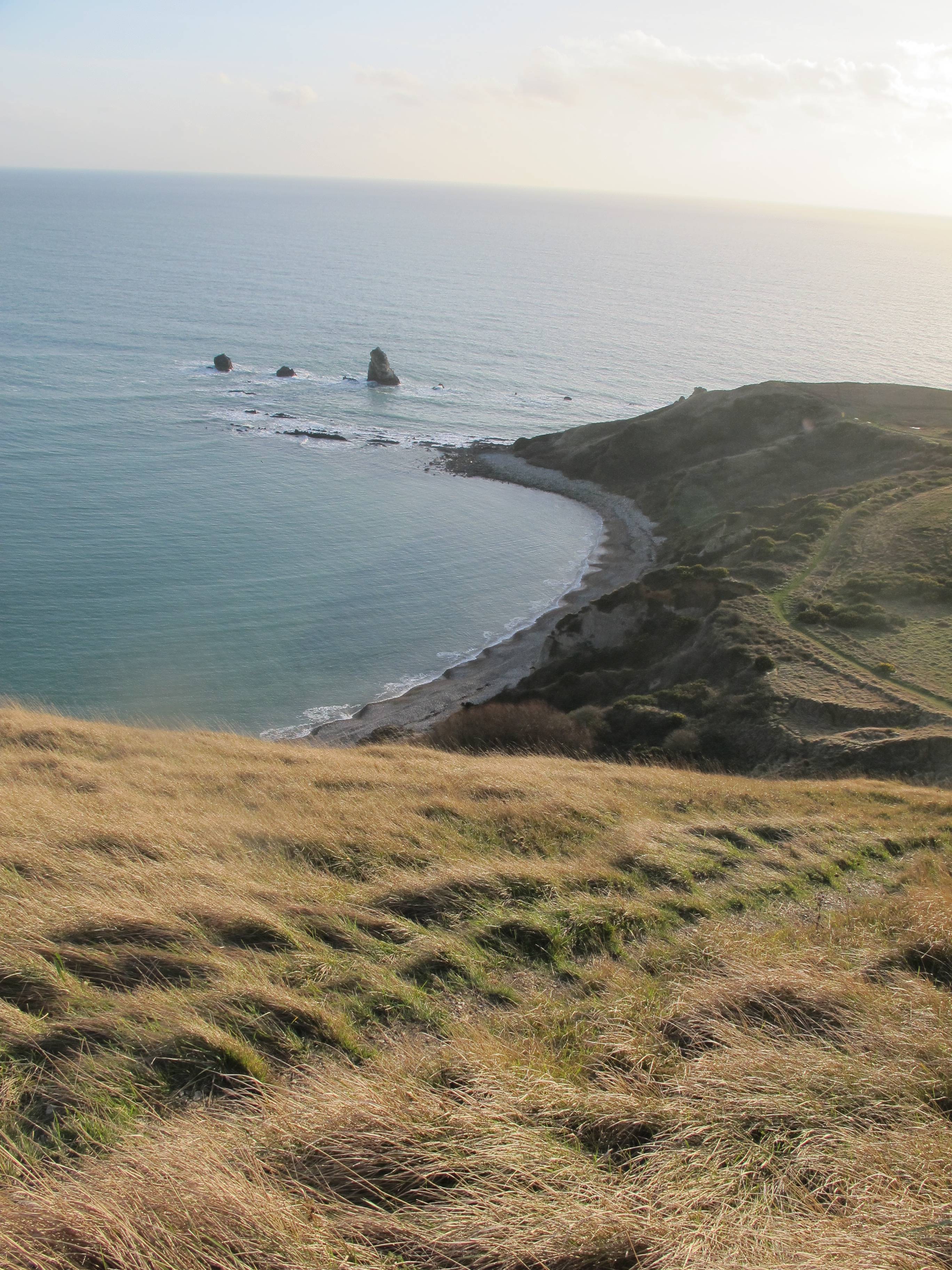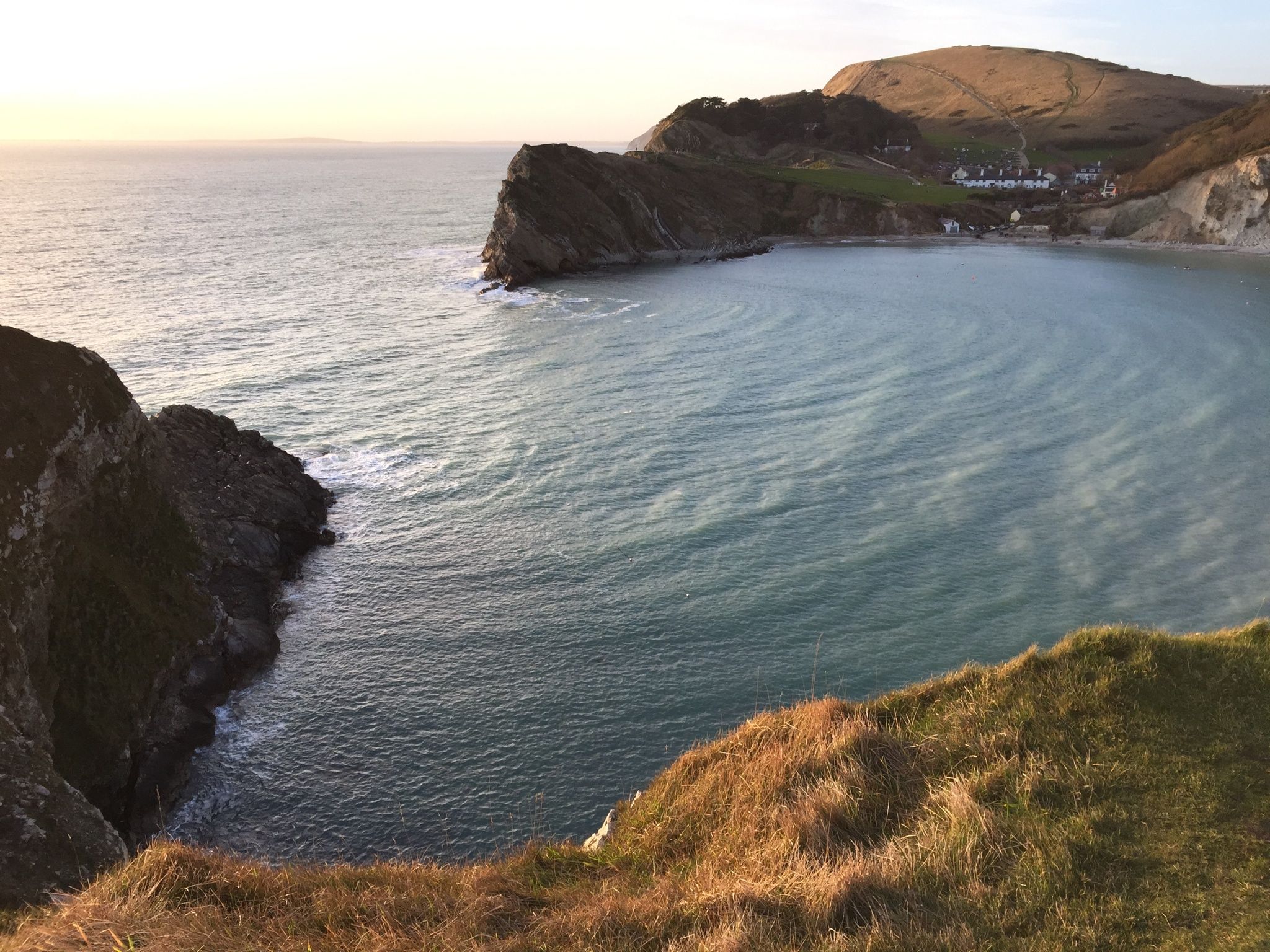 IMG_2081Soon we start heading down to the perfect symmetry of Lulworth Cove….IMG_6025_2IMG_6029_2Standing on the headland looking across the cove makes me giddy and I politely refuse Damian’s suggestion to take a short cut down a very narrow track, winding down the steep cliff. Instead we walk along the stoney beach in the late afternoon sunshine, up onto the road and into the warm fug of the hotel for tea and cakes. There are now no breaks in my path all the way from North Norfolk to just outside Plymouth.