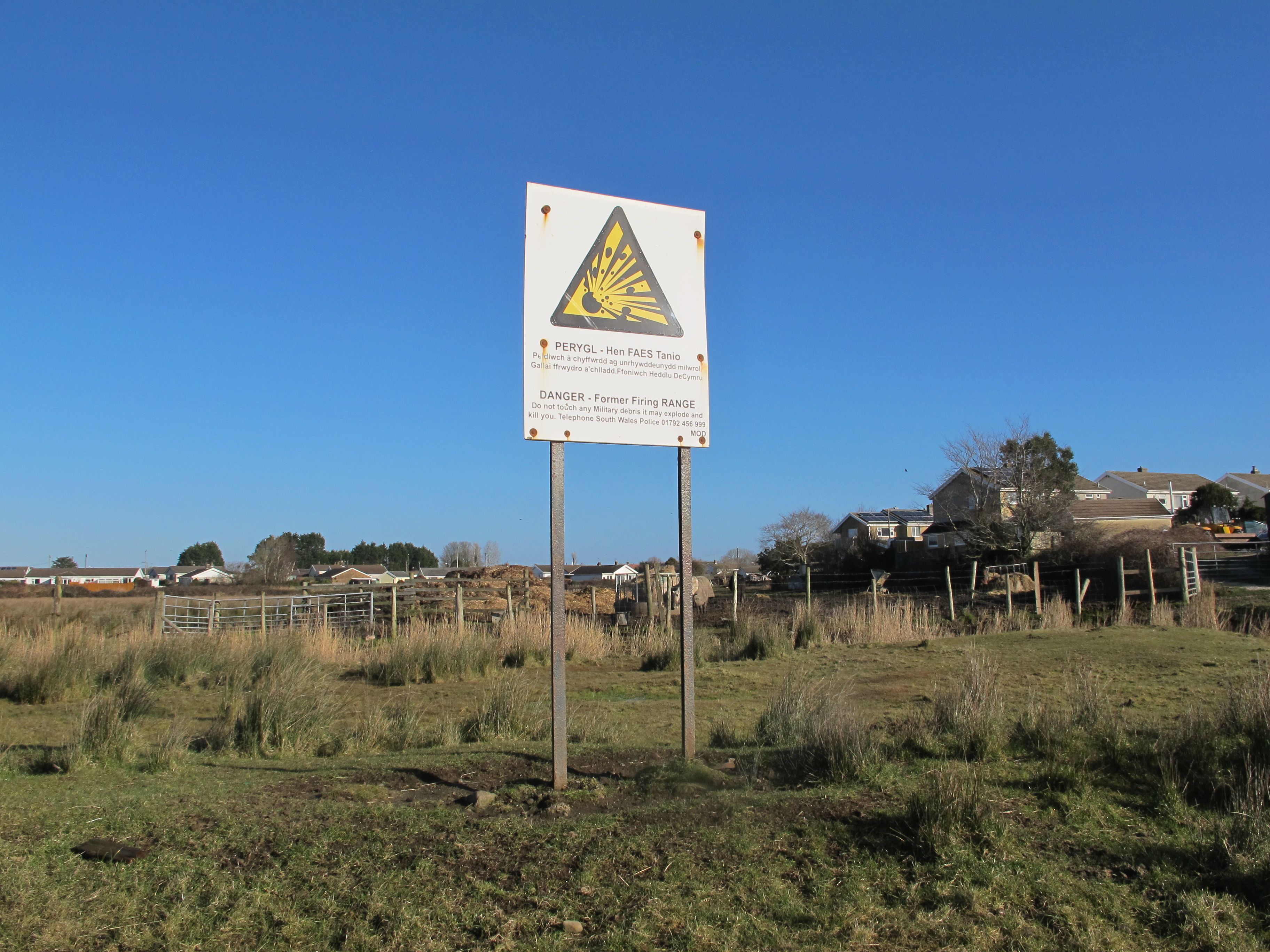 After a while of walking on the tarmac lane I reach the village of Crofty where I am thankful for grass to walk on. The path skirts the village and takes me through a former military area with the obligatory warnings.