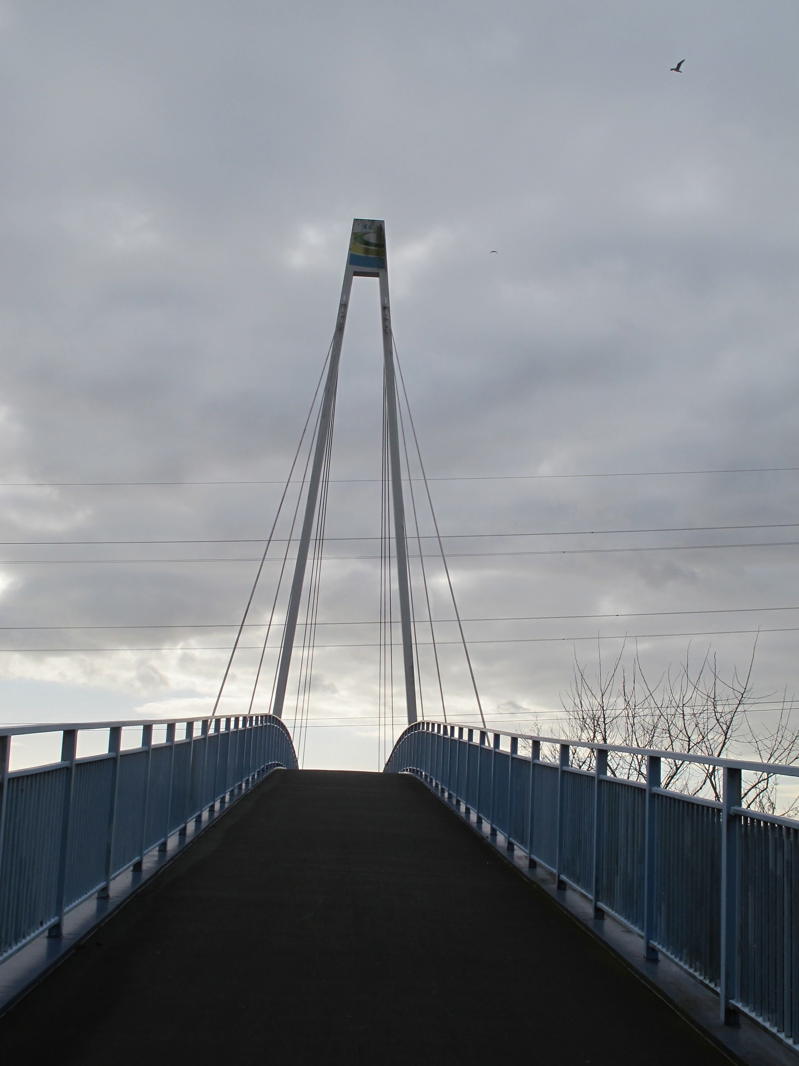 Coming off the bridge I walk through a carpark and over a bridge following signs for the Millennium Coast Path. I don’t know why the mast of the bridge looks like it’s tilting as it is perfectly straight in reality – I feel I need to read my new camera’s manual a little more carefully.