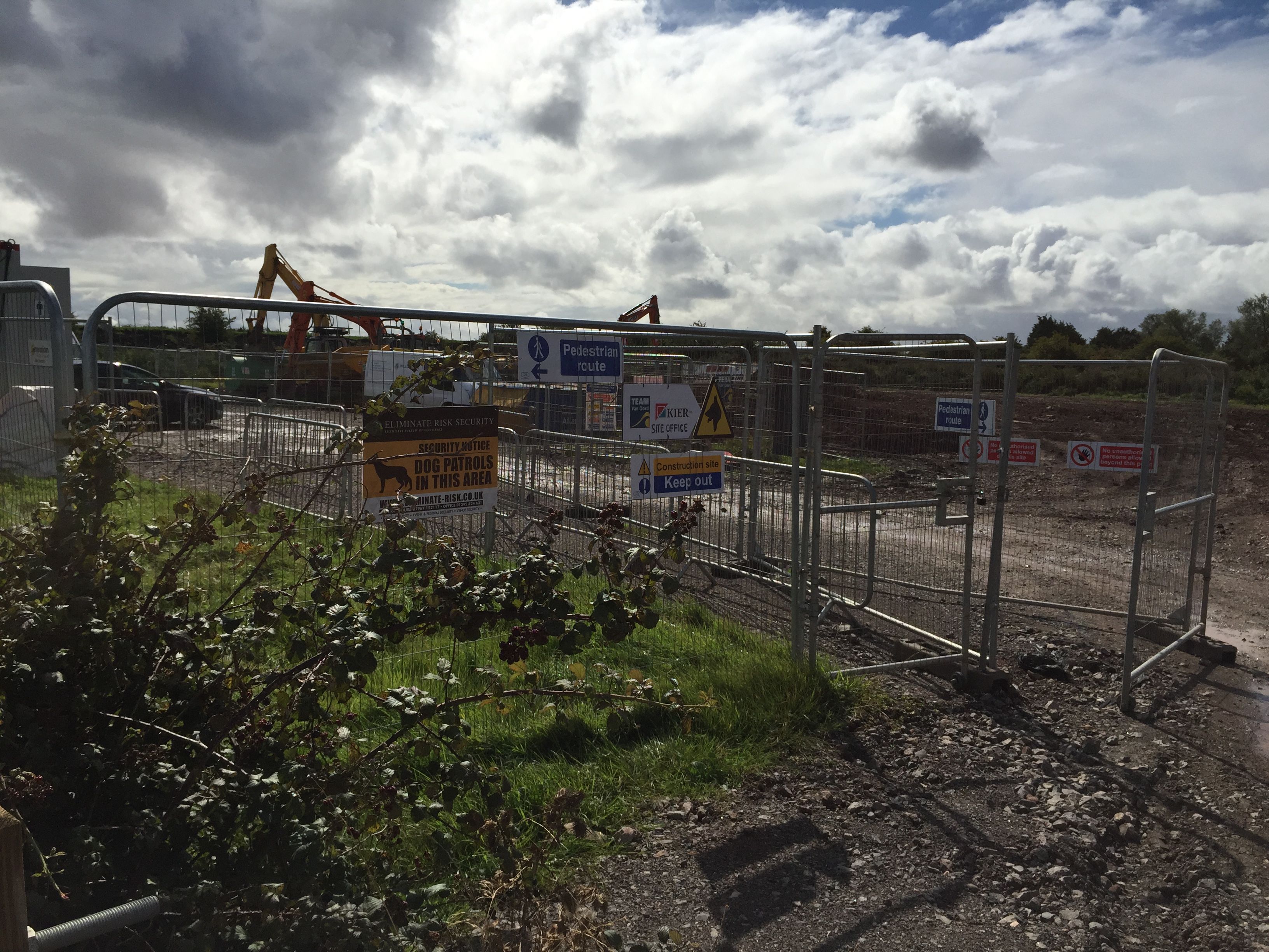 After a mile or two a sign brings us up short, sending us off to the right. This deviation is to allow for flood defence work on the sea wall – there are diggers and cranes remoulding the bank.