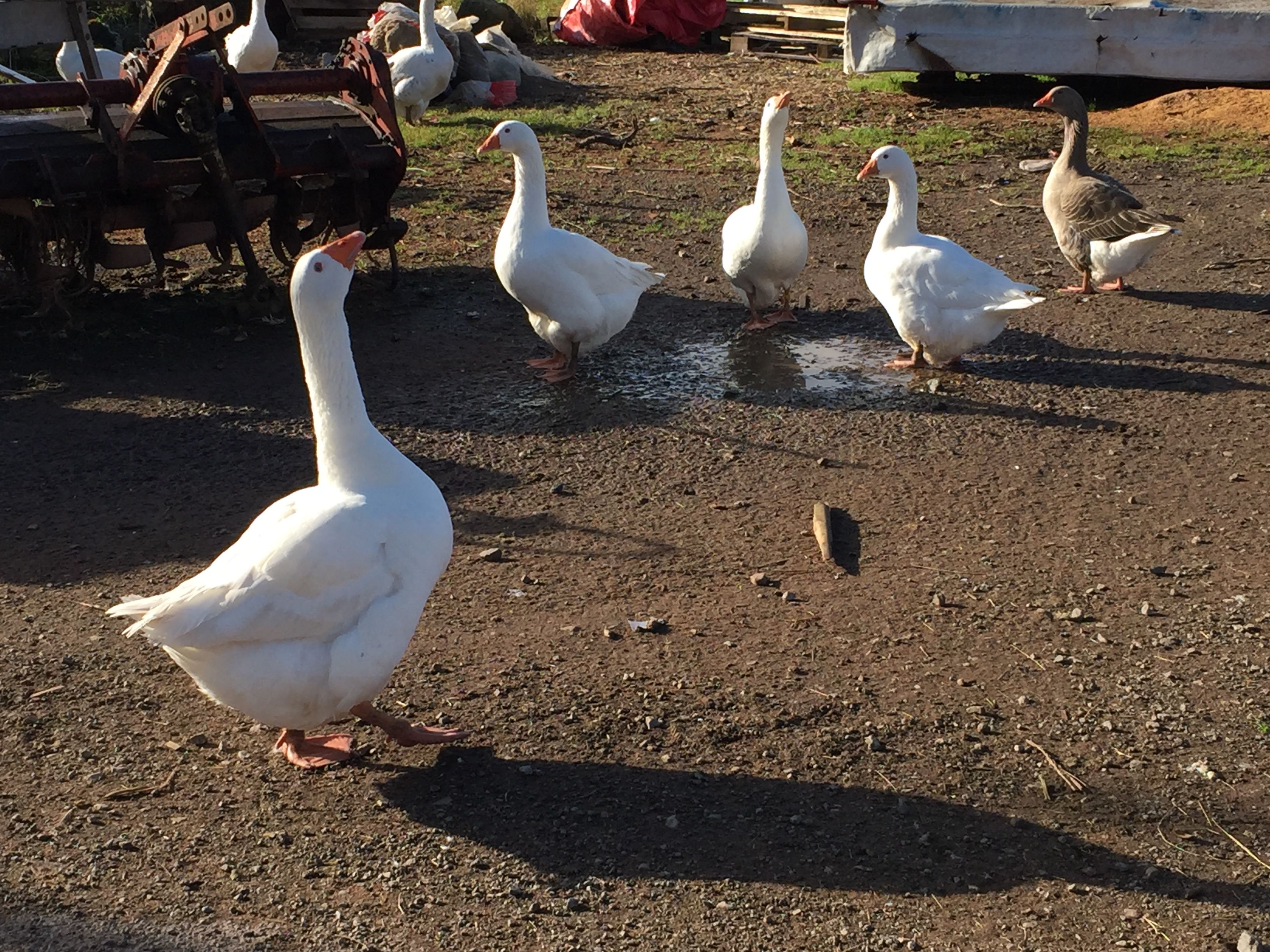 …………..and at one point I walk past a lovely homestead with its thriving kitchen garden and through the trees to the left of me three pure white ducks waddle across what must be a purpose built walkway.