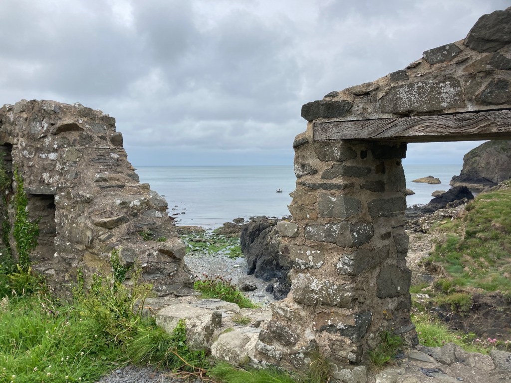 By now we are nearing the inlet that leads up to the village of Trefin. The path leads us to a stream running down to a stony beach. On the other side of the stream are the ruins of a water mill, the old grinding stone still intact. We rest for a while…