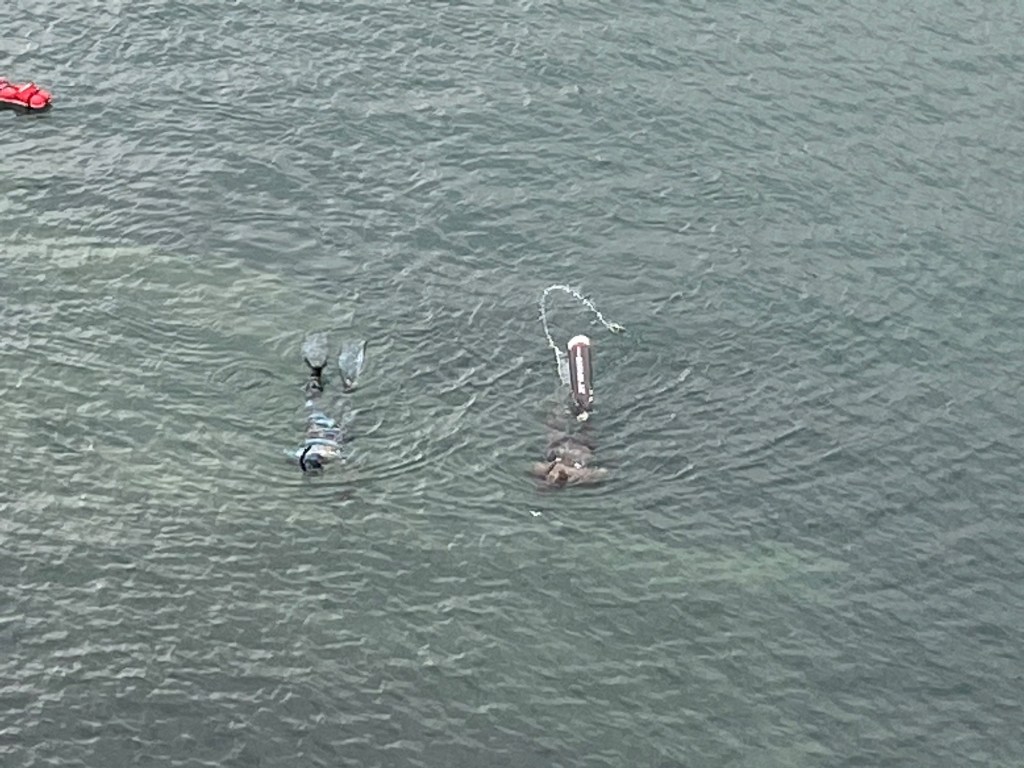 Anyway, up onto the cliffs we go, stopping momentarily to watch a couple in wetsuits and snorkelling gear circling around a spot at the foot of the cliffs. I wonder what they are looking for. The huge flippers they are using along with the rest of the paraphernalia make them look like creatures from another world.