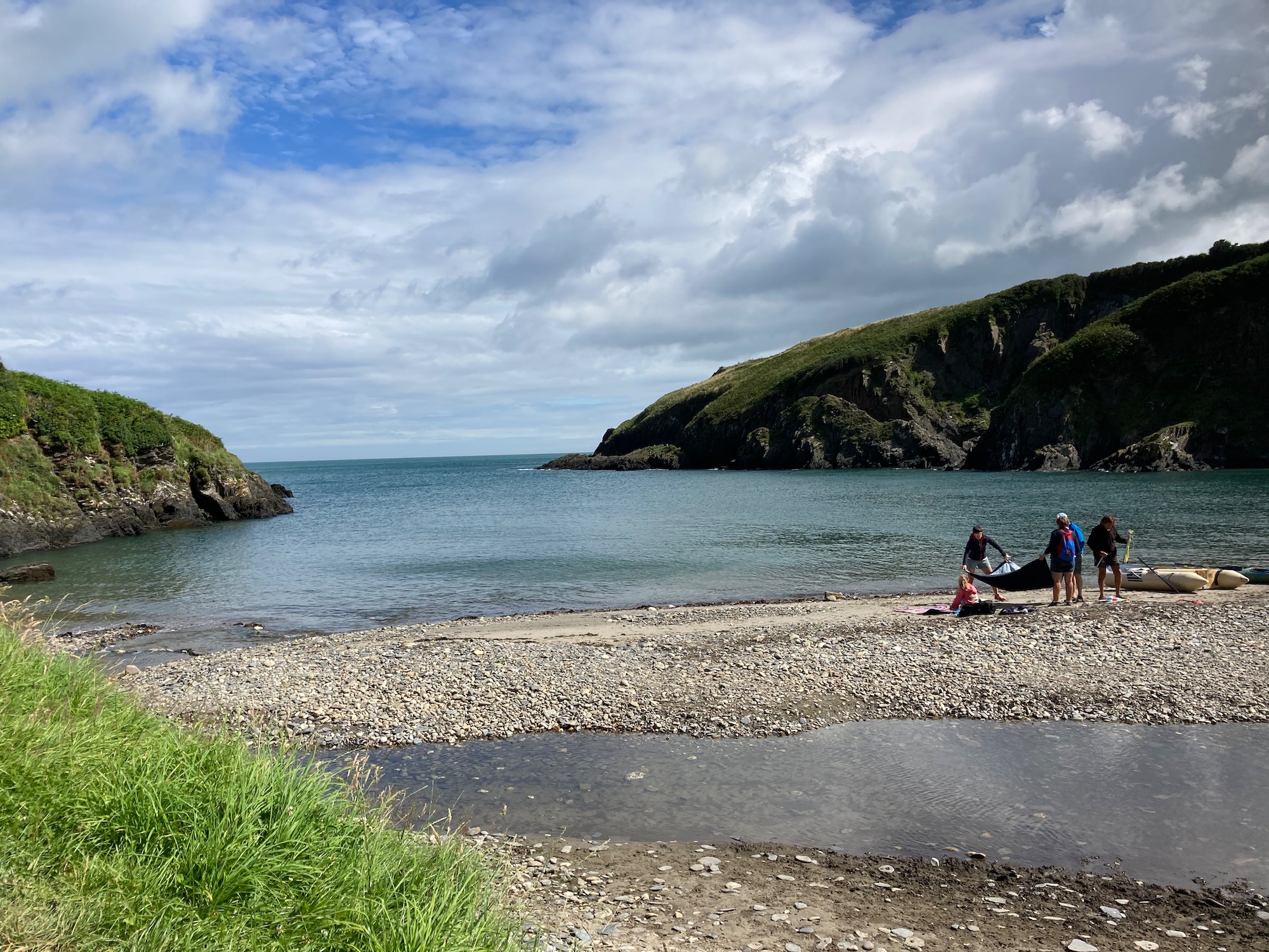 Heading out east from a sleepy Cwm yr Eglwys we arrive at a pretty little beach where a family are busy preparing to set out in kayaks.