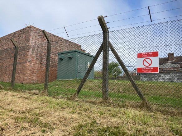 The friendly dolphin marks the start of our walk today, around the beach at Aberporth and up on to a very steep minor road which leads to the military base just outside the town.