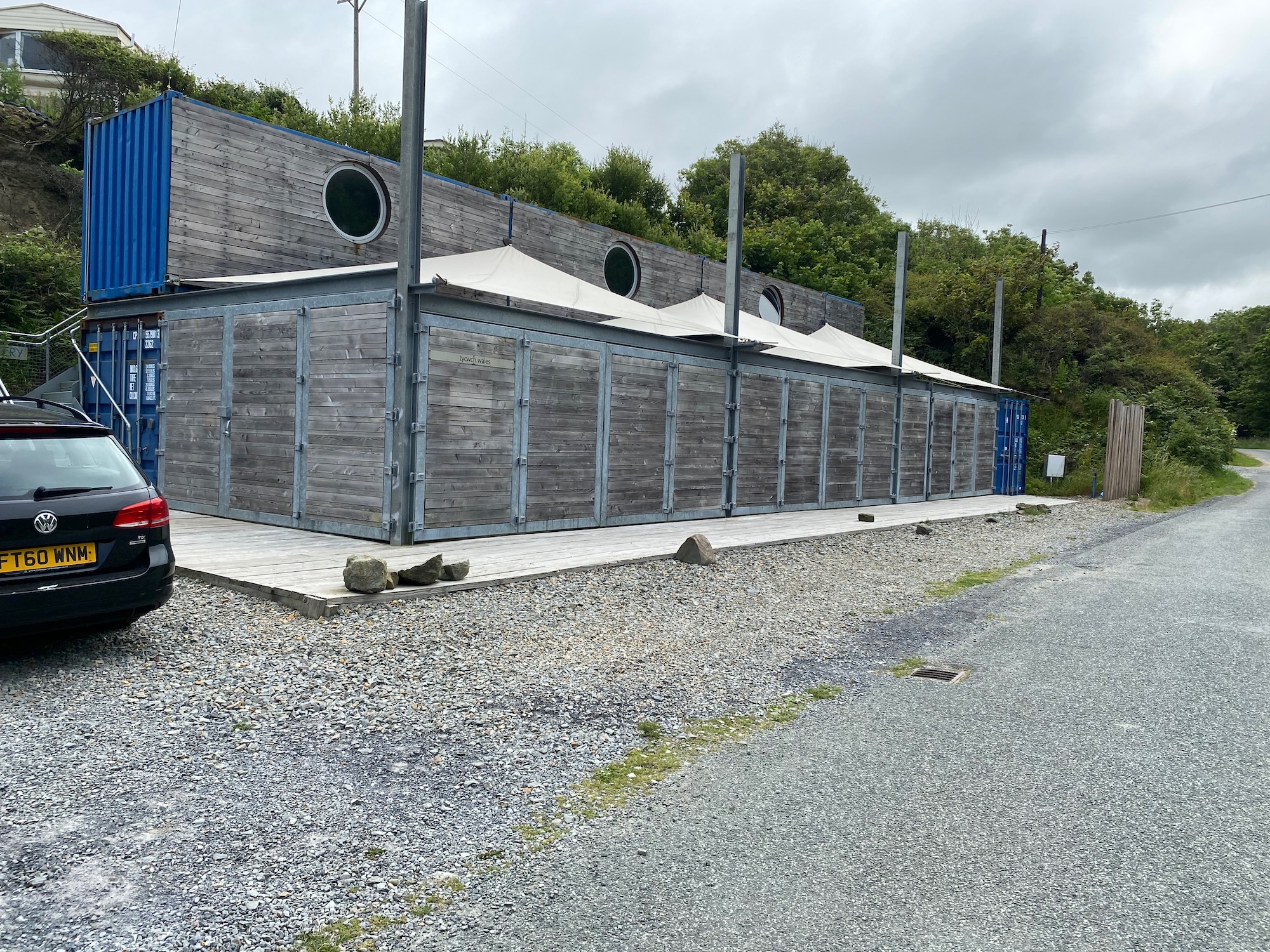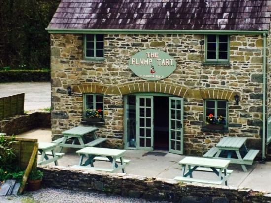 Penbryn has toilets, a car park and a cafe called the Plwmp Tart – I did wonder why Damian decided to take a photo of me at this point!