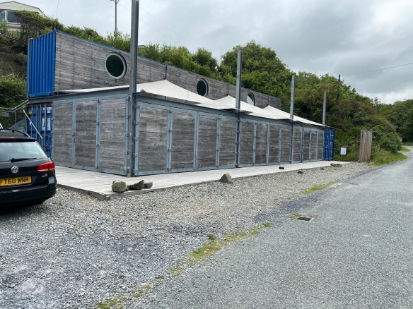 I visit the public toilets which are immaculate while Damian investigates the container accommodation pods mostly used by kayakers.