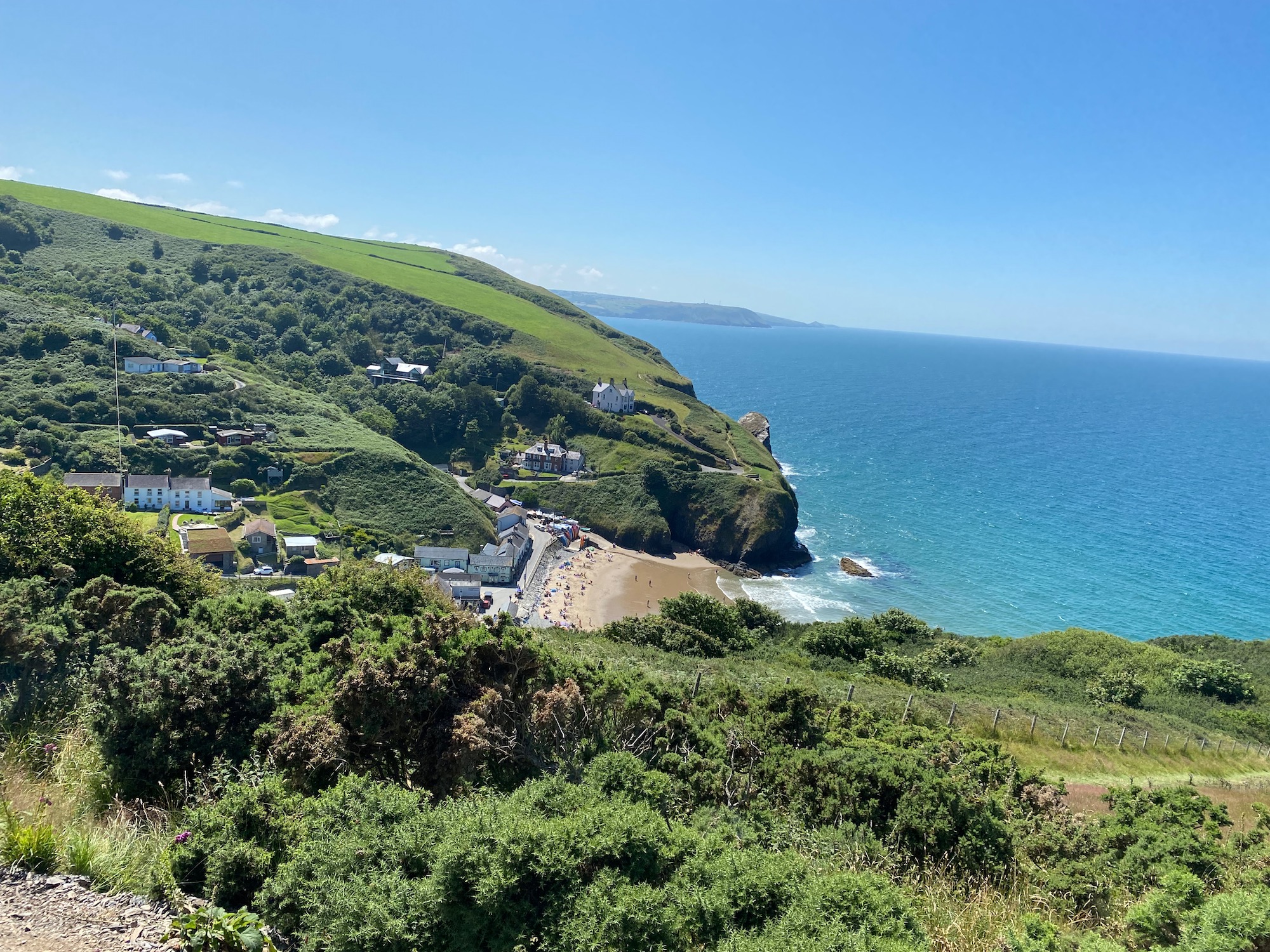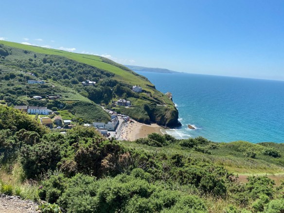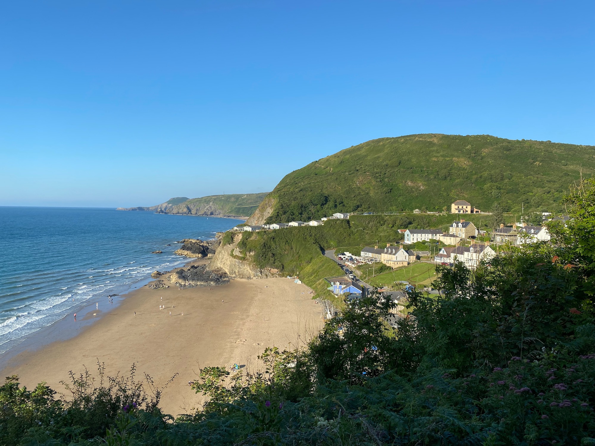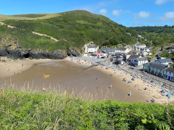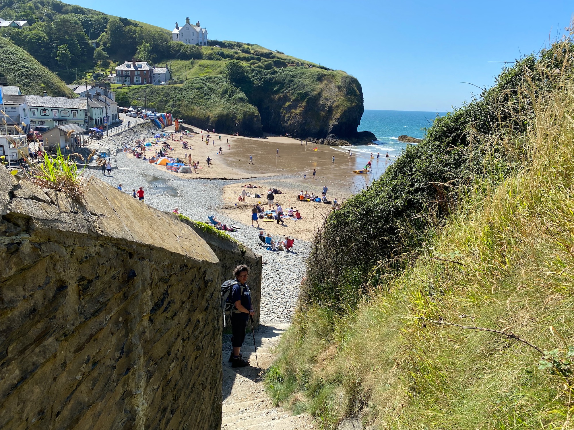 We are now nearing Llangrannog – you can just about see the narrow path winding around the headland and after a steep descent we are back to civilisation.