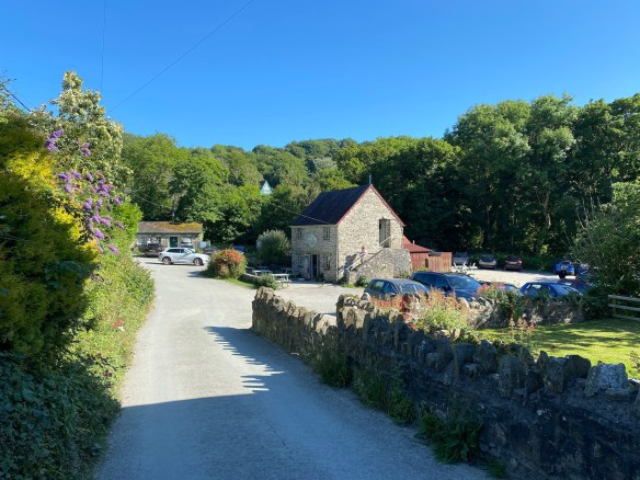 The small cove of Cwmtydu is accessed by a minor road which winds down through dense woodland. Our taxi drops us in the “high street” and we are lucky enough to find an open cafe run by a gruff but benign Welshman serving coffee, tea and Welsh cakes.