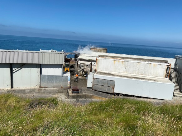 Setting off west towards Cwmtydu we think we find the coastal path up on the cliffs but find ourselves coming to a stop just above New Quay’s seafood processing plant which has been in trouble over the years due to the number of shells it deposits on the town’s beaches. Whelk shells are apparently sharp and are not only a nuisance for soft bare feet but also interfere with boat engines. Two thousand tonnes of shells deposited per year is rather a lot……………………