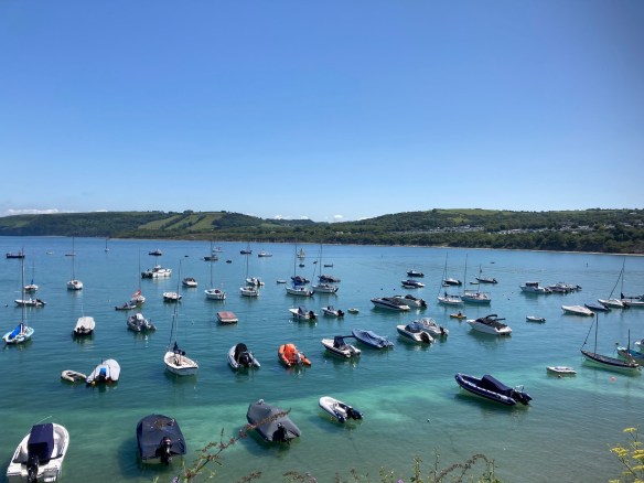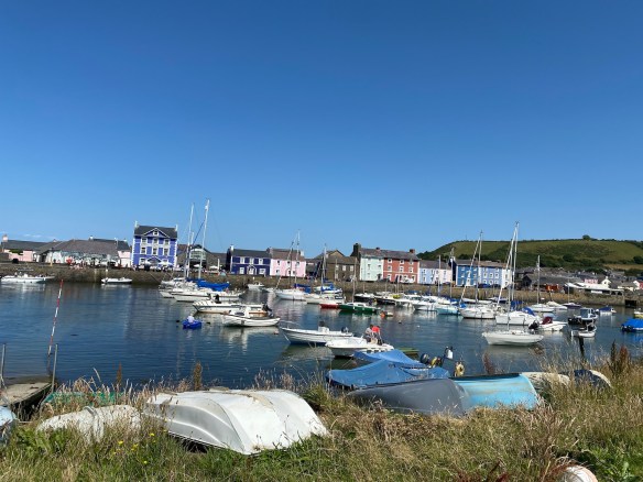 It is another gorgeous day as we set out in the opposite direction from yesterday to do a walk via Aberaeron to Llanon. It is an easy start past the small leisure boats bobbing up and down in the harbour, along a long stretch of sand/mud where a few families are paddling, children playing with their own small plastic boats.