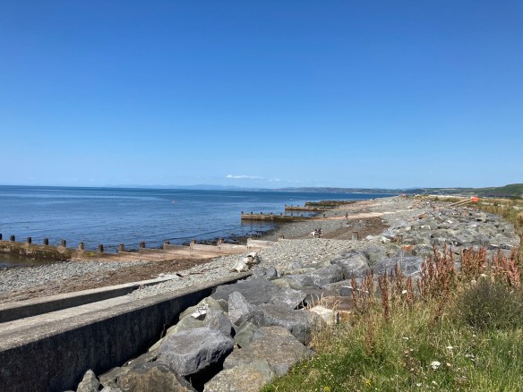 Onwards we go, now bouncing merrily along in our trainers, past the groynes, on a path running parallel to the shingle beach.