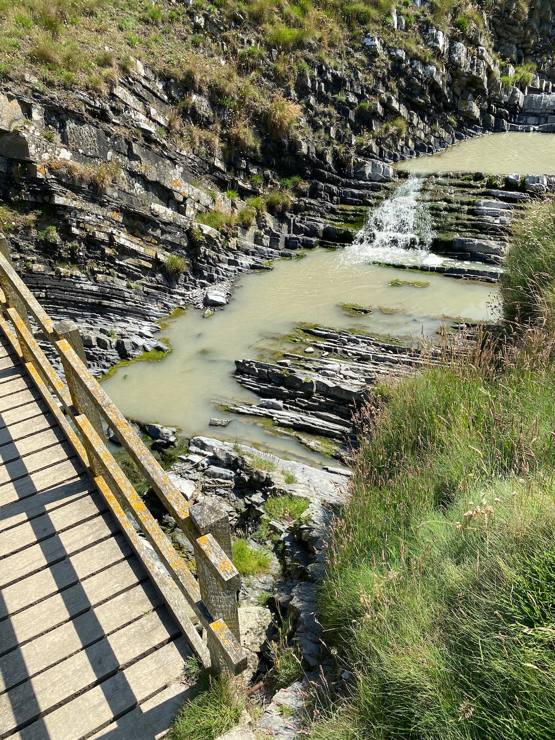Not so in the water we encounter running down through the next valley. There does not seem to be an obvious culprit, no industrial buildings in sight and when I check the map all I see is an activity centre at the top of the valley. Hmmmmm………….maybe they were having a mega clean up with some sort of disinfectant. Whatever it is it doesn’t look healthy.