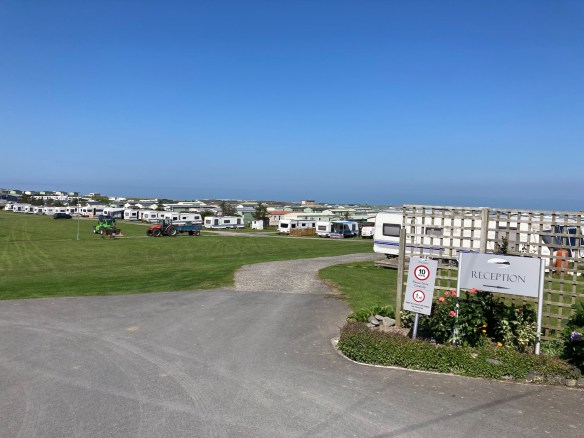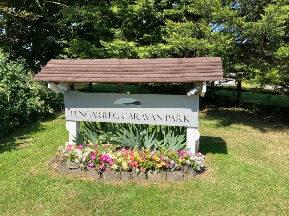 First mistake of the day is driving down to where we started yesterday for our walk back to Llanon. I had not studied the map carefully enough and thought we could just turn right but no there is a river to cross and no bridge over it. Back we go up the minor road, park the car and follow signs for a caravan park, after which we turn off right on to the coast path.