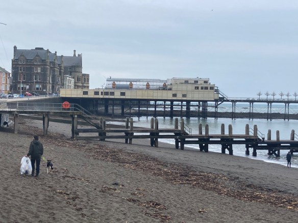 The last time we were here was back in July when we were struggling with the heat. This time the sky is grey and overcast with a promise of rain. I am pleased to see a man and his dog collecting litter from the beach.