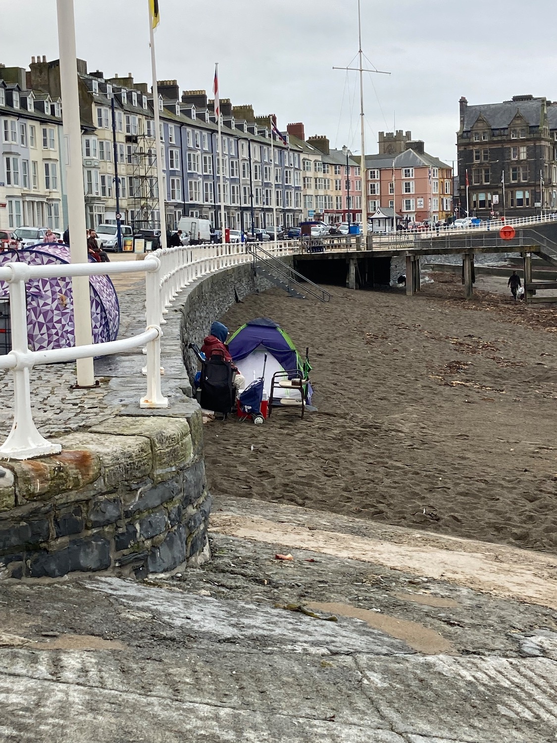 We find the railway station and sit and wait for our train back to Aberystwyth. The weather has not been as bad as we expected but I am looking forward to my dinner and bed.
