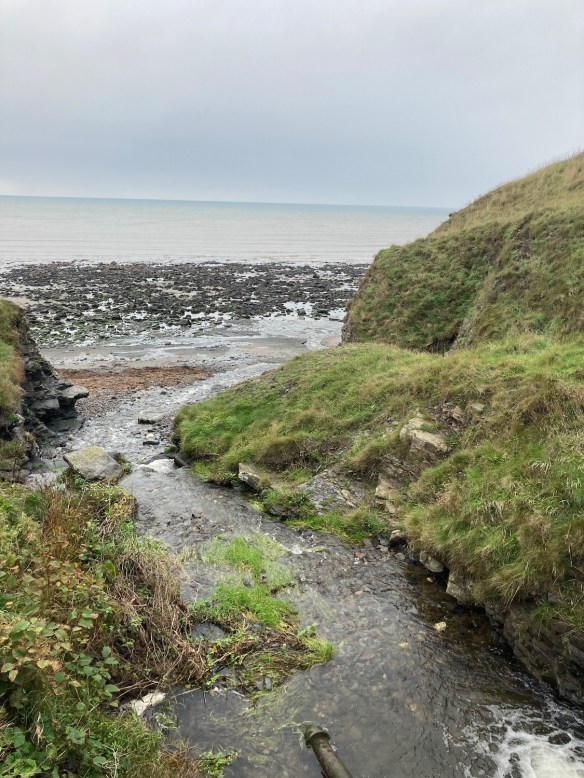 After that bit of excitement we struggle into our waterproofs and heads down set off along what we assume is the coast path. After 15 minutes I take a look at the map and realise that we have missed the turn so back we go.