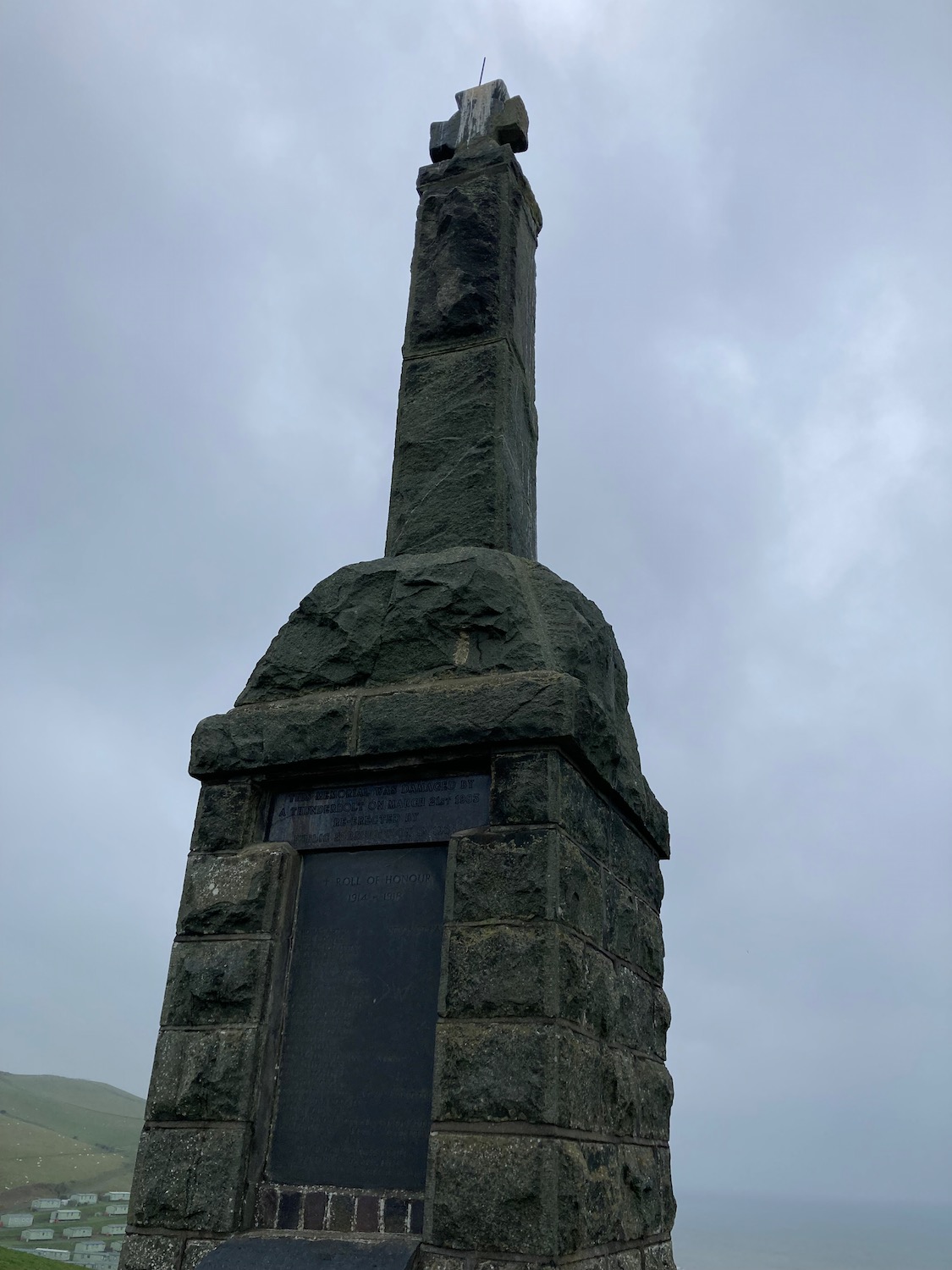 We are now beginning to see Borth in the distance but we have one more very steep hill to climb. At the top is a war memorial and a great view of Borth, although somewhat obscured by the greyness of the day.