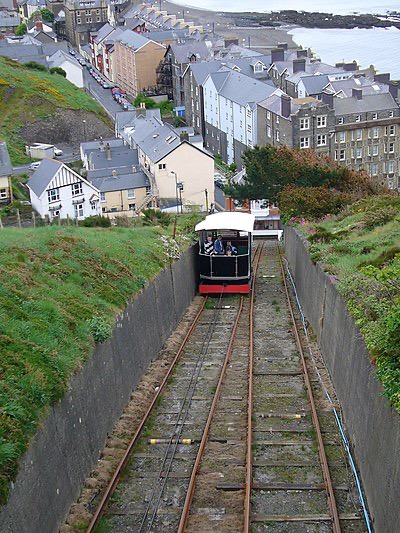 Fortunately, as far as I can see, the easiest way up is to take the cliff railway which trundles up the very steep slope to the top of Constitution Hill. Opened in 1896 the railway used a water balance system (look it up) but was electrified in 1921. At the top is a park, a cafe, a gift shop and the largest Camera Obscura in the world, which is closed.