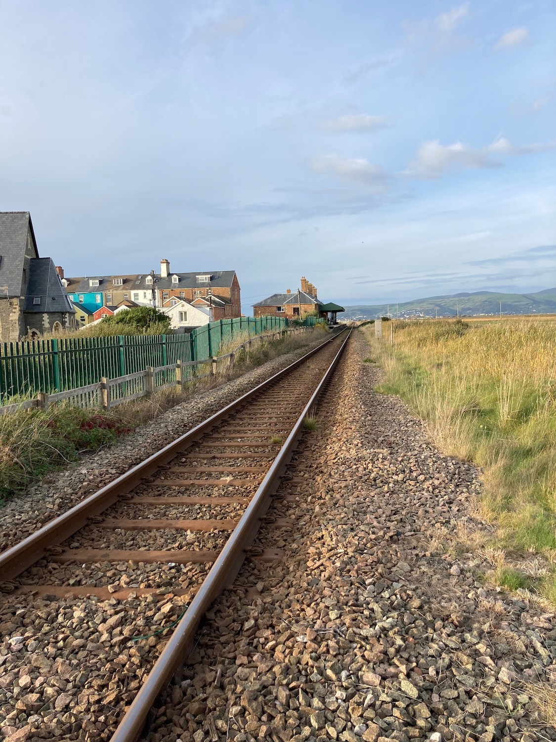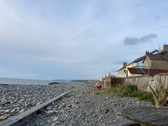 Soon we begin to see the the very long row of houses that lines Borth seafront – it’s what I remember from childhood holidays, along with the stoney beach. We cross the railway line, up a side street and here we are.