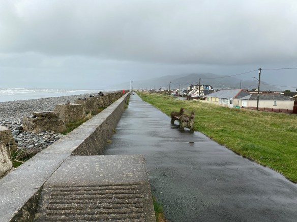 So that was yesterday – today we drive the car to the ferry point at Fairbourne, leave it in the carpark and turn our backs on Barmouth to walk south to Llwyngwril. Fairbourne itself is a grim desolate place, sitting on featureless marshland but it is surrounded by the foothills of Snowdonia National Park. A wiki tells me that the village has been identified as unsustainable to defend, given the predicted rise in sea levels. The best estimate at present is that the area will be abandoned between 2052 and 2062.